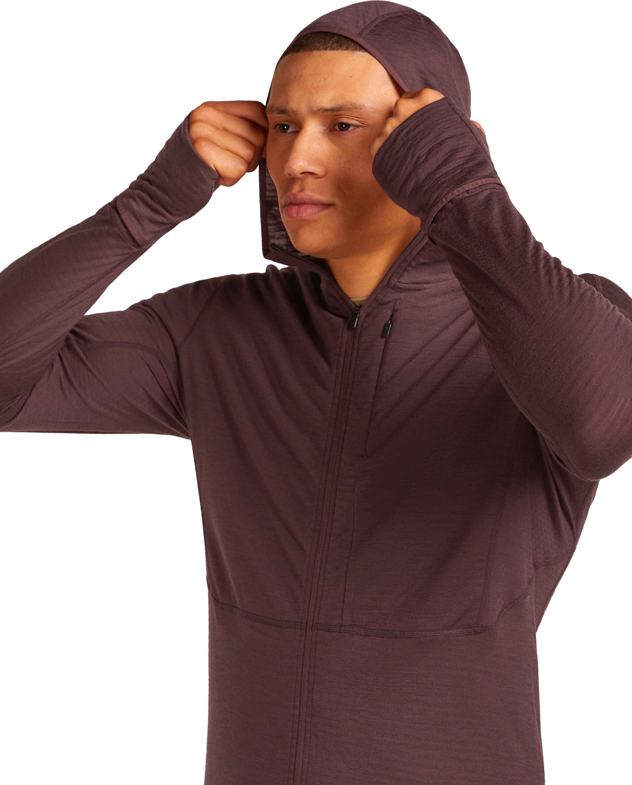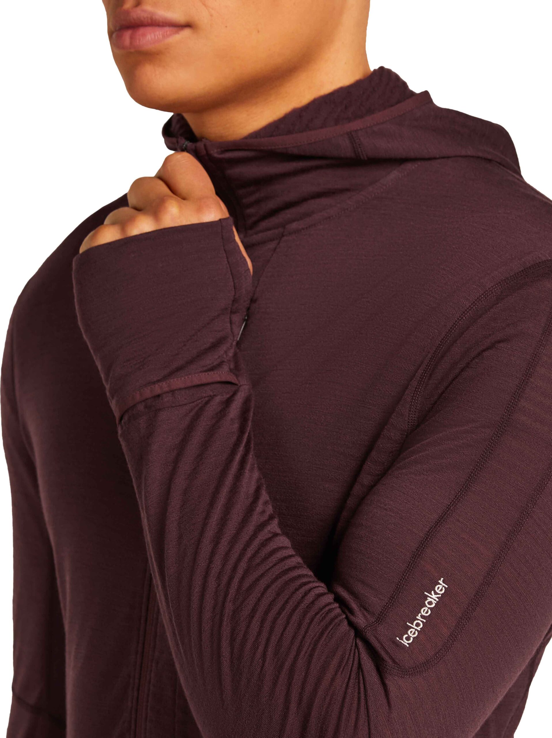 Icebreaker Descender LS Zip Hoodie : polaire demi-zippée à capuche en laine mérinos RealFleece™ 200 et Lyocell TENCEL™, chaude, respirante, avec ventilations Cool-Lite™ et passe-pouces.