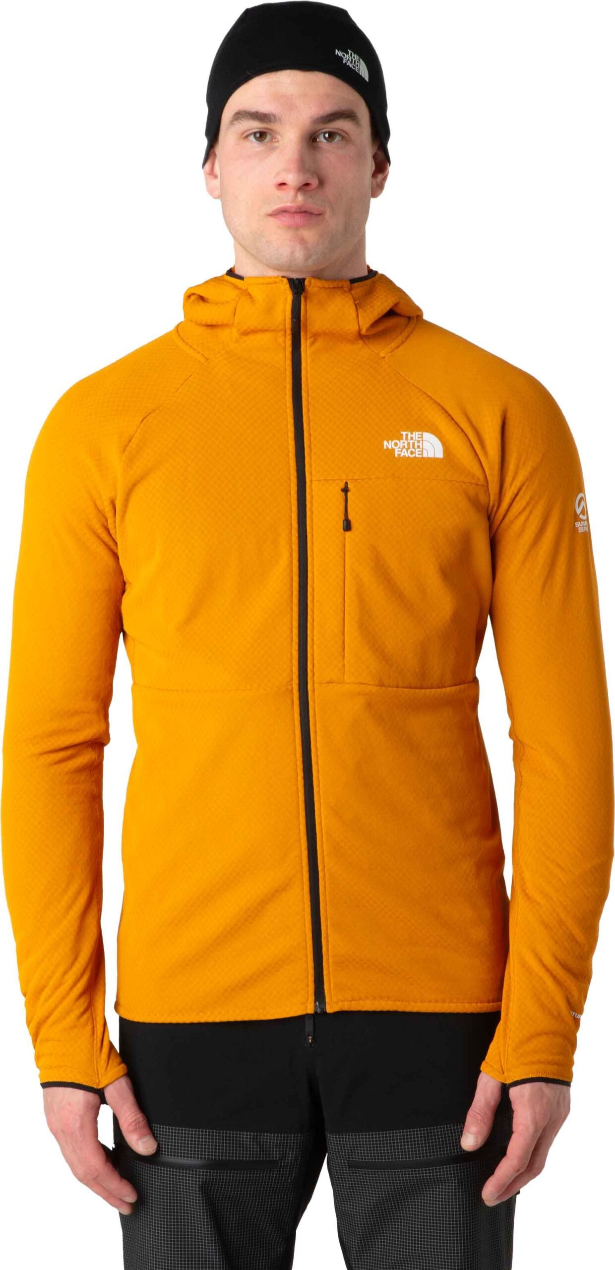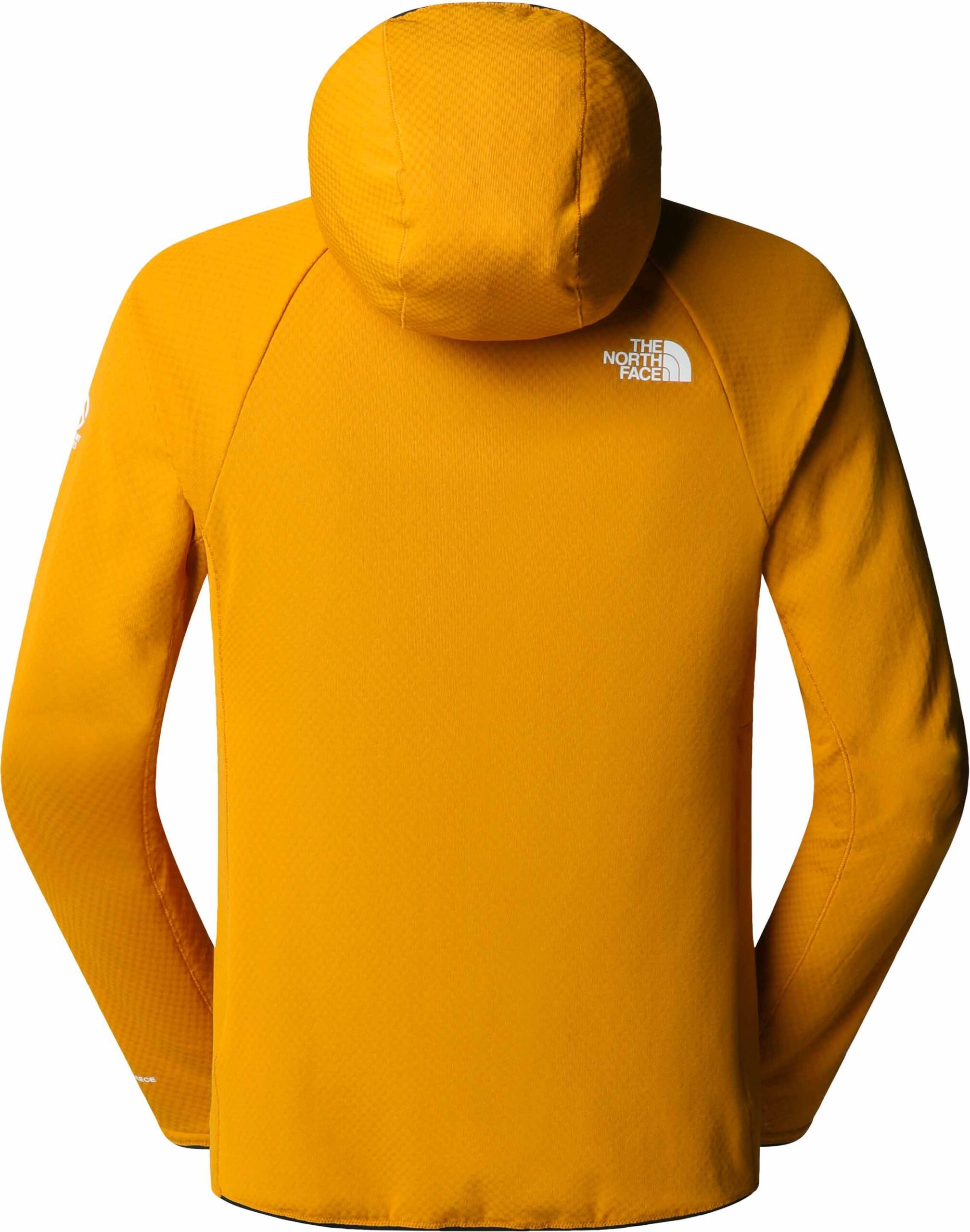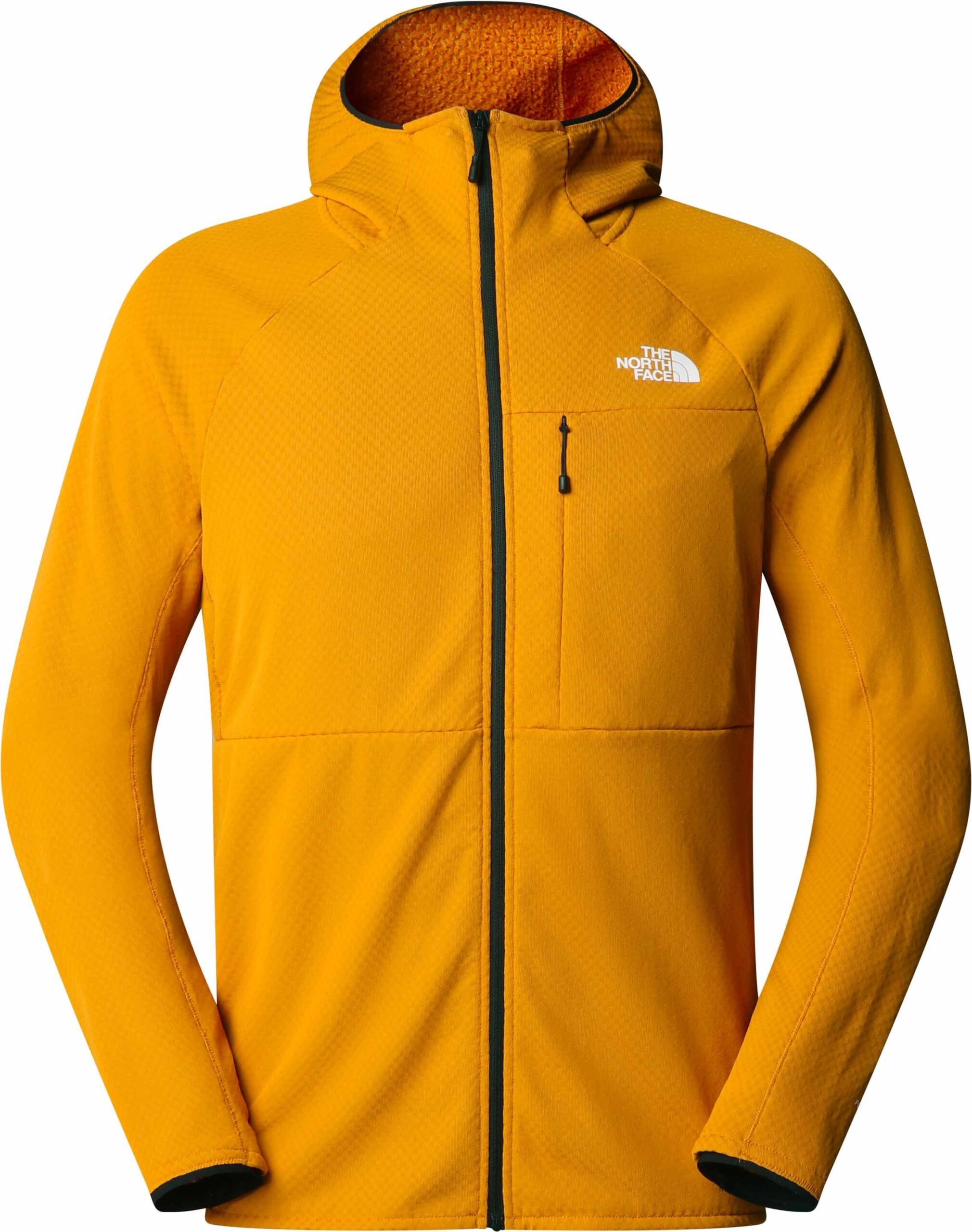 The North Face Futurefleece FZ Hoody Citrine Yellow pour homme, veste Summit Series™ en FutureFleece™, allège thermorégulation, poids et encombrement pour expéditions haute montagne ; épaules sans couture, confort sous sac.
