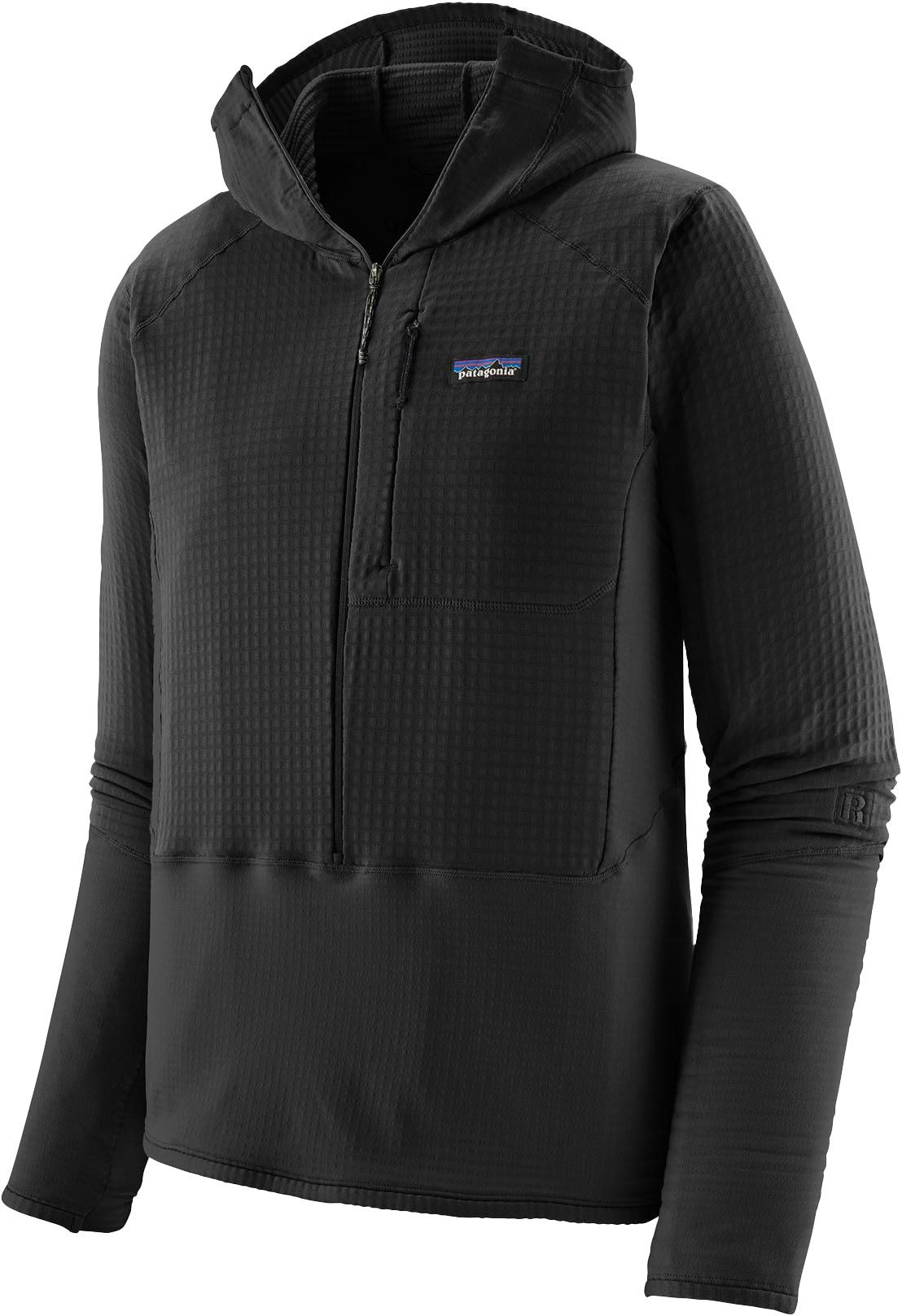 Polaire Patagonia R1 P/O Hoody homme en Polartec® Power Grid™ pour légèreté et respirabilité, traitement HeiQ® Fresh, capuche casque compatible, passes-pouces et coutures décalées épaules.