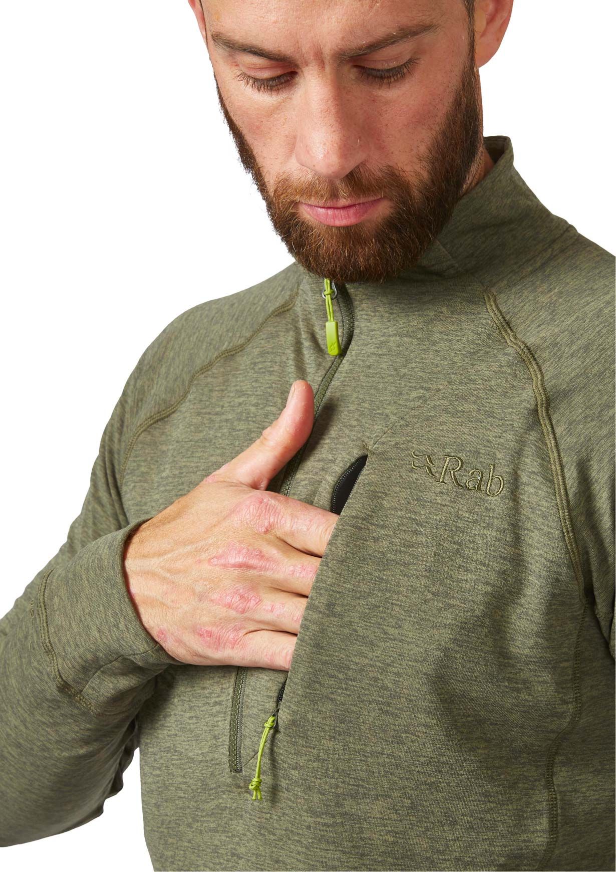 Rab Nexus Pull-On Light Khaki, polaire homme en Thermic™ G recyclé, respirante et extensible pour randonnée, alpinisme ou escalade par temps froid.