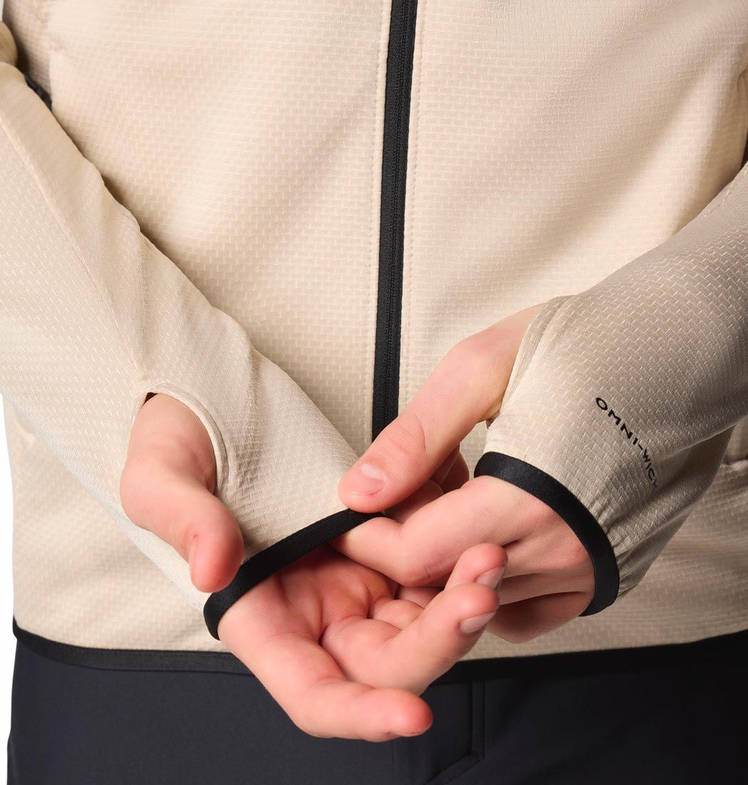 La polaire Columbia Triple Canyon Grid Fleece Fz II Dark Stone Black pour homme allie technologie OMNI-WICK™ pour un séchage rapide, manches raglan pour une totale liberté de mouvement et col montant protégeant du vent frais.