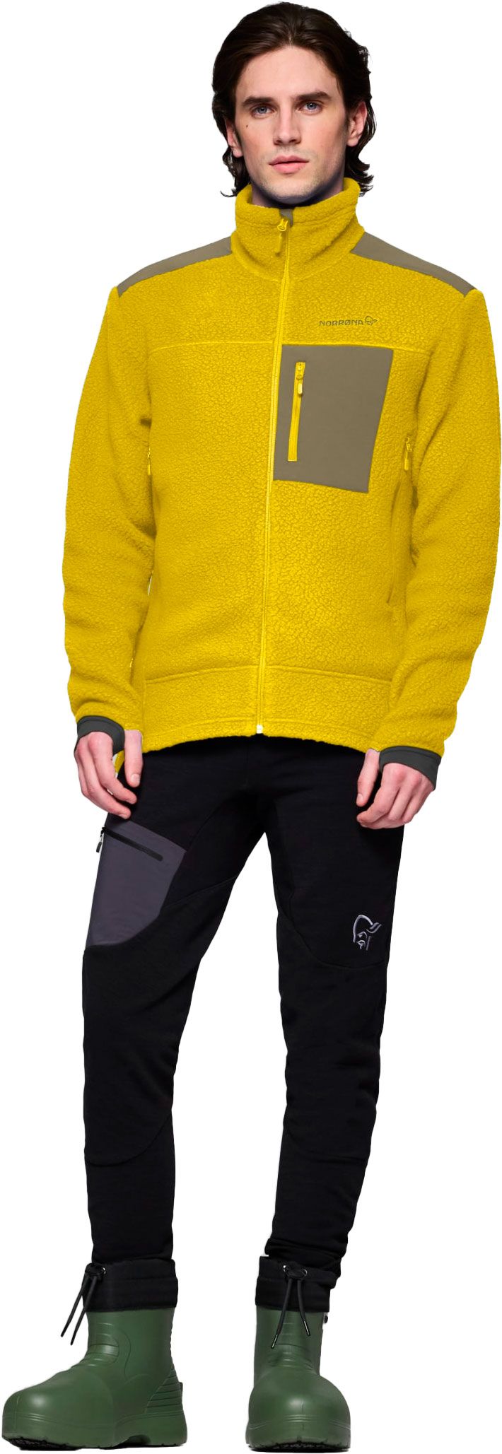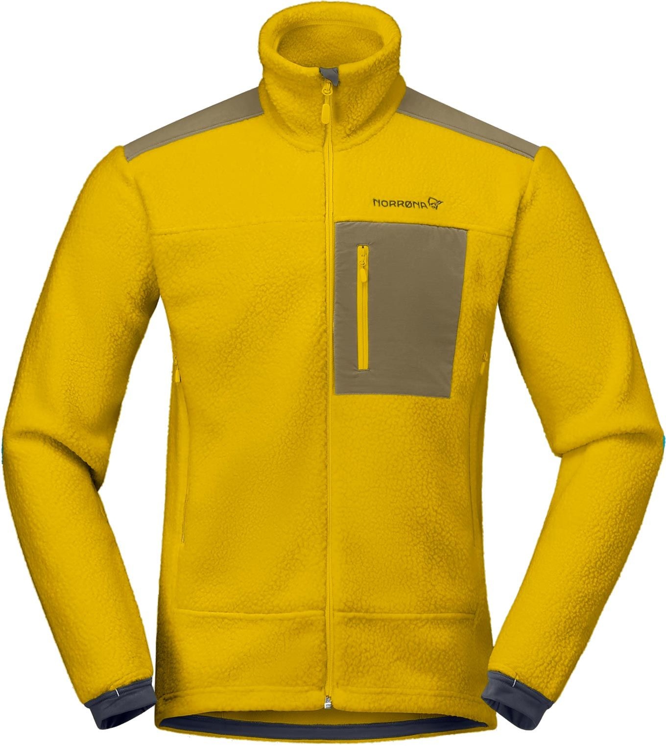 La polaire Norrona Trollveggen Warm3 Jacket Golden Palm pour homme allie chaleur maximale et légèreté pour l’alpinisme, avec design rétro adapté à la ville. Tissu Warm™3 isolant, 2 poches chauffe-mains, poche poitrine, guêtres intégrées et col protecteur.
