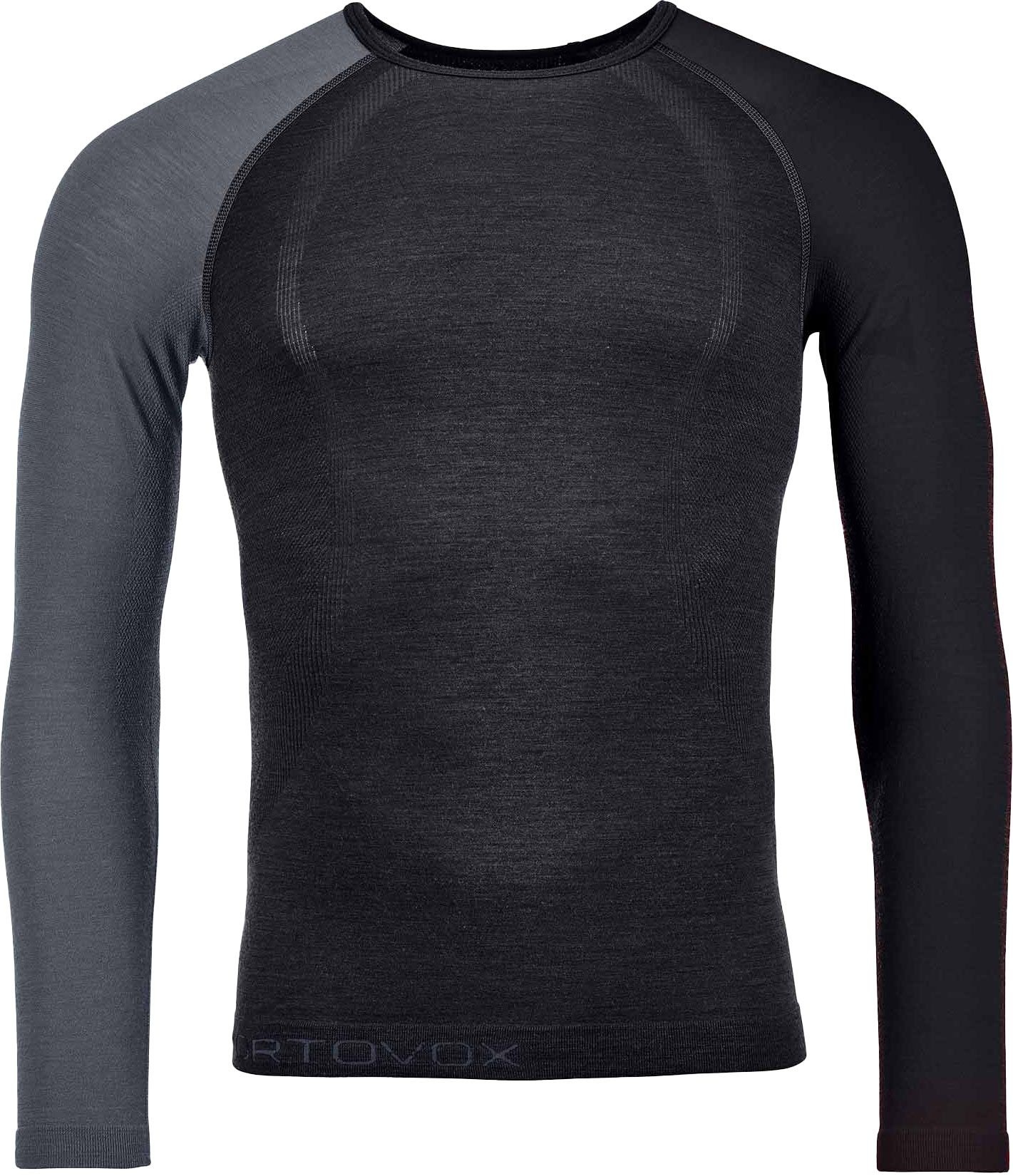 Sous-vêtement technique à manches longues Ortovox 120 Comp Light Long Sleeve pour homme, en laine mérinos légère, body-mapping sans coutures pour respirabilité et liberté de mouvement en effort par temps frais.