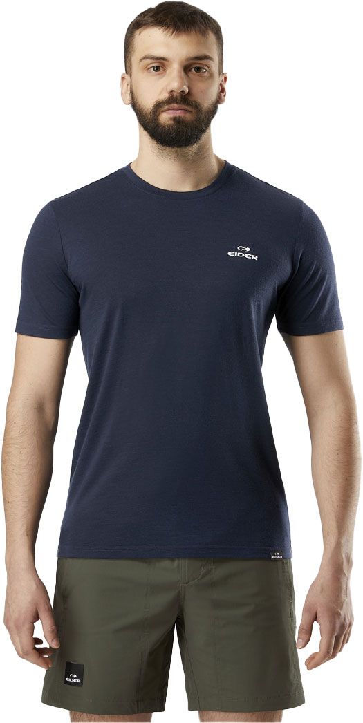 T-shirt technique EIDER Merino Path Tech Tee Navy pour homme, en laine mérinos respirante et thermorégulante, antibactérienne pour rester frais. Coutures plates pour le confort en mouvement.