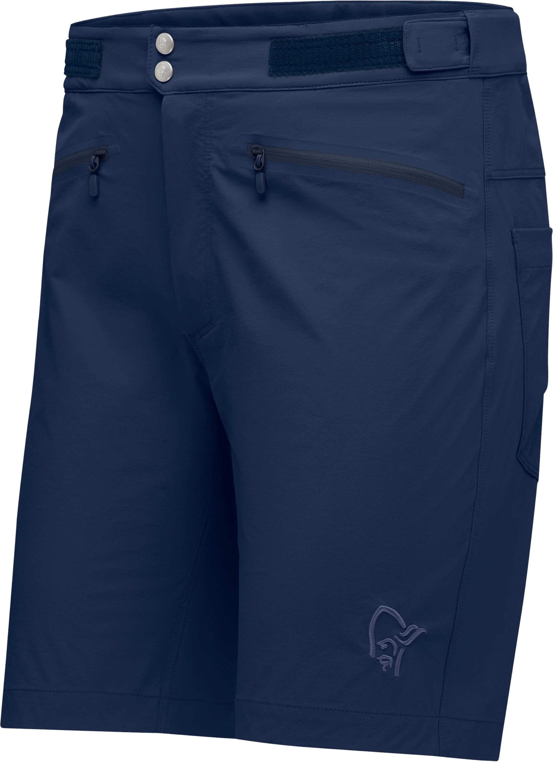 Short softshell Norrona Femund Flex1 Lightweight Indigo Night Blue homme : tissu Flex1 déperlant, respirant et coupe-vent, stretch 4 directions, taille Custom-fit™, poches zippées, idéal rando montagne.