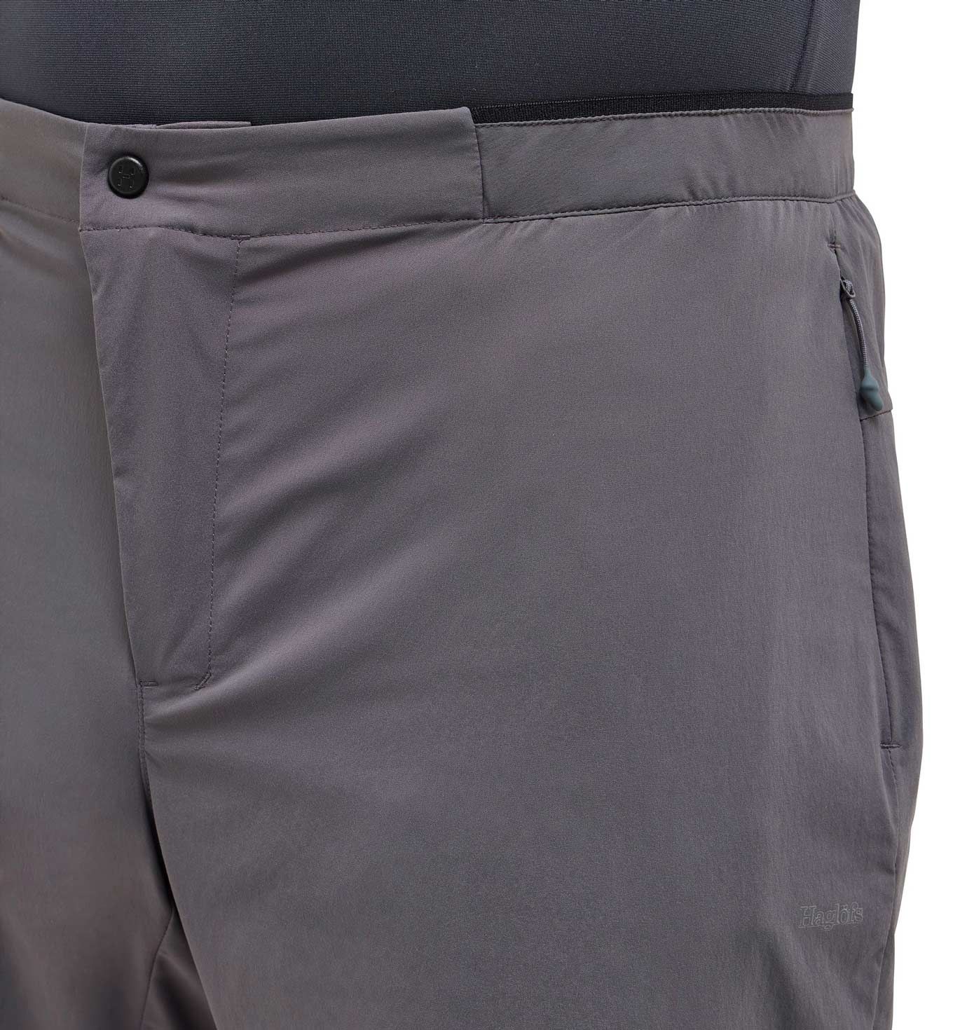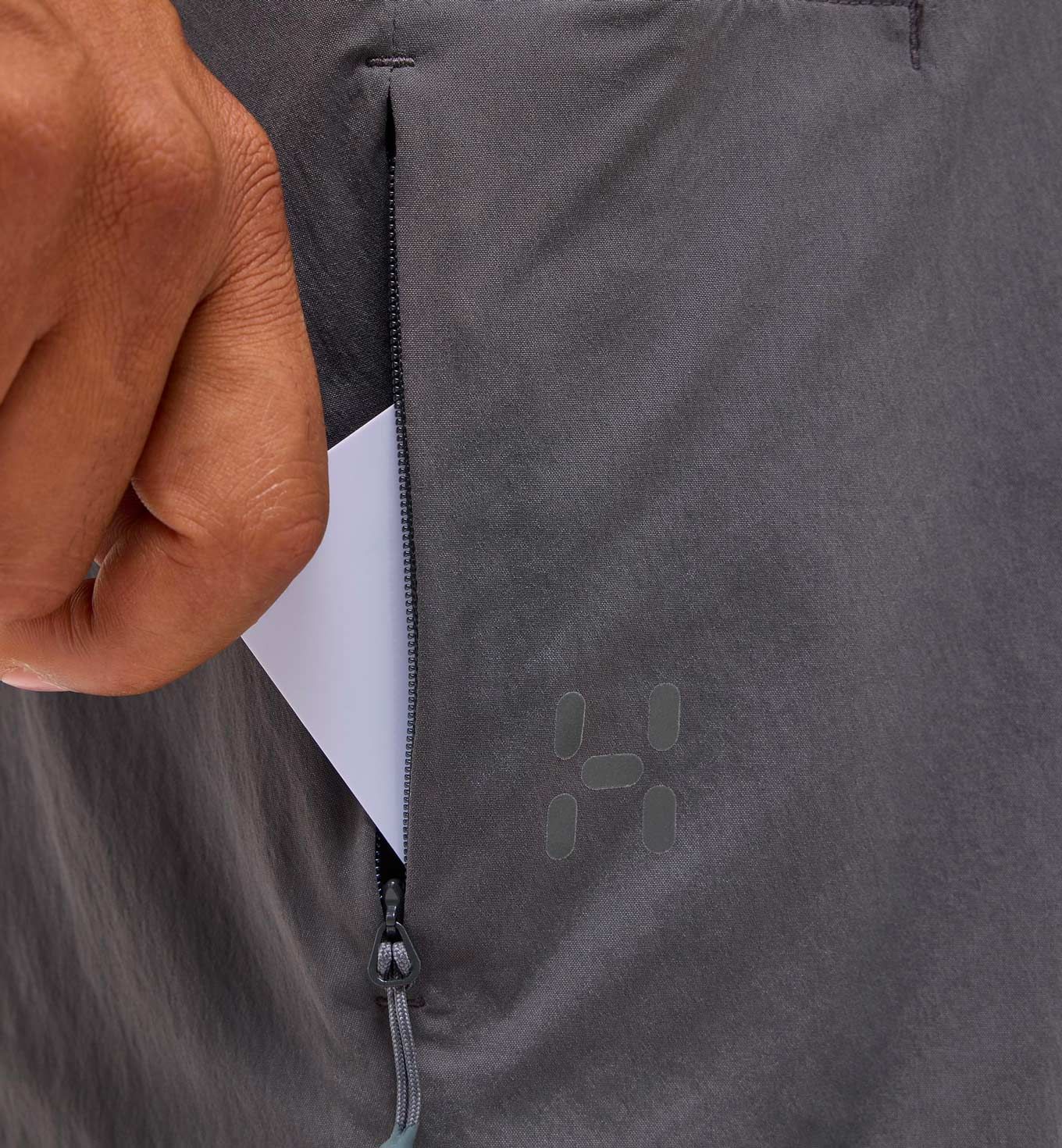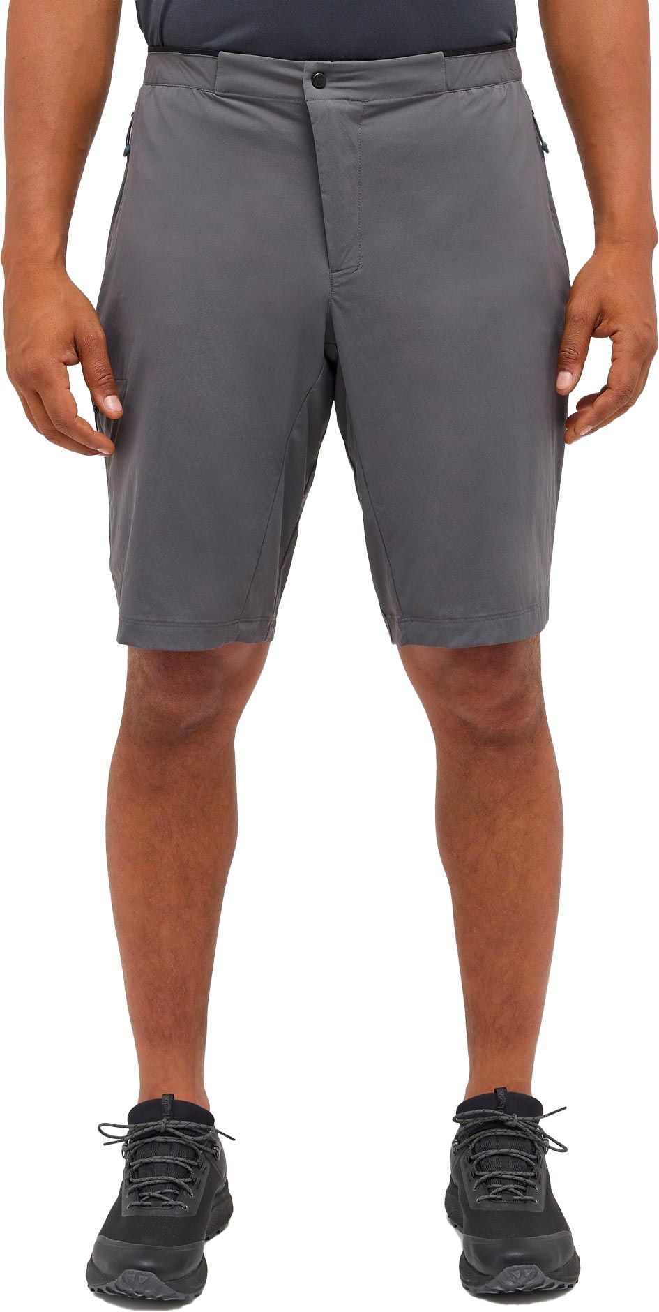 Short Haglöfs L.I.M Fuse II Magnetite pour homme, ultra-léger et extensible, offrant respirabilité, liberté de mouvement et poches zippées sécurisées pour la randonnée par temps chaud.