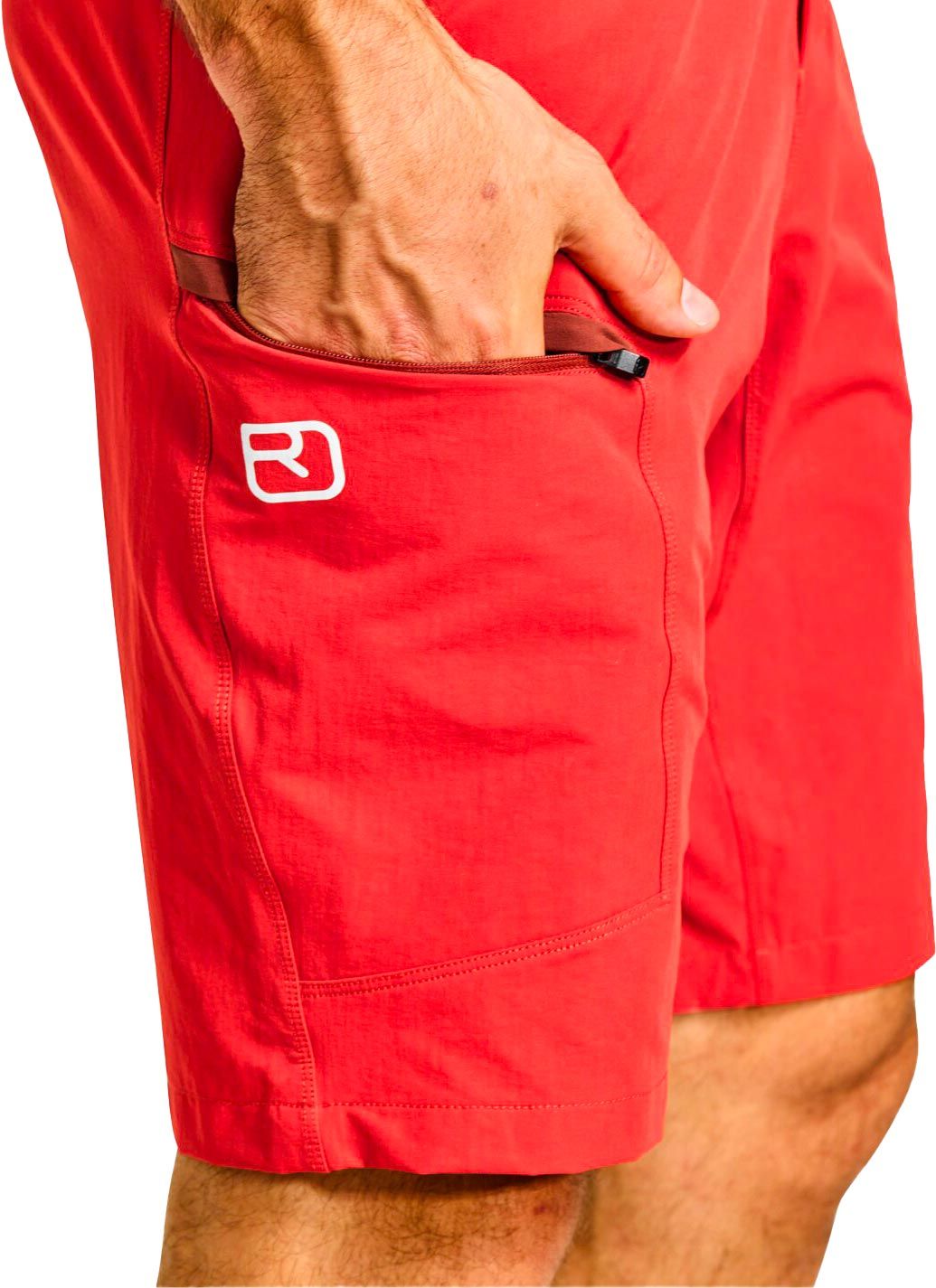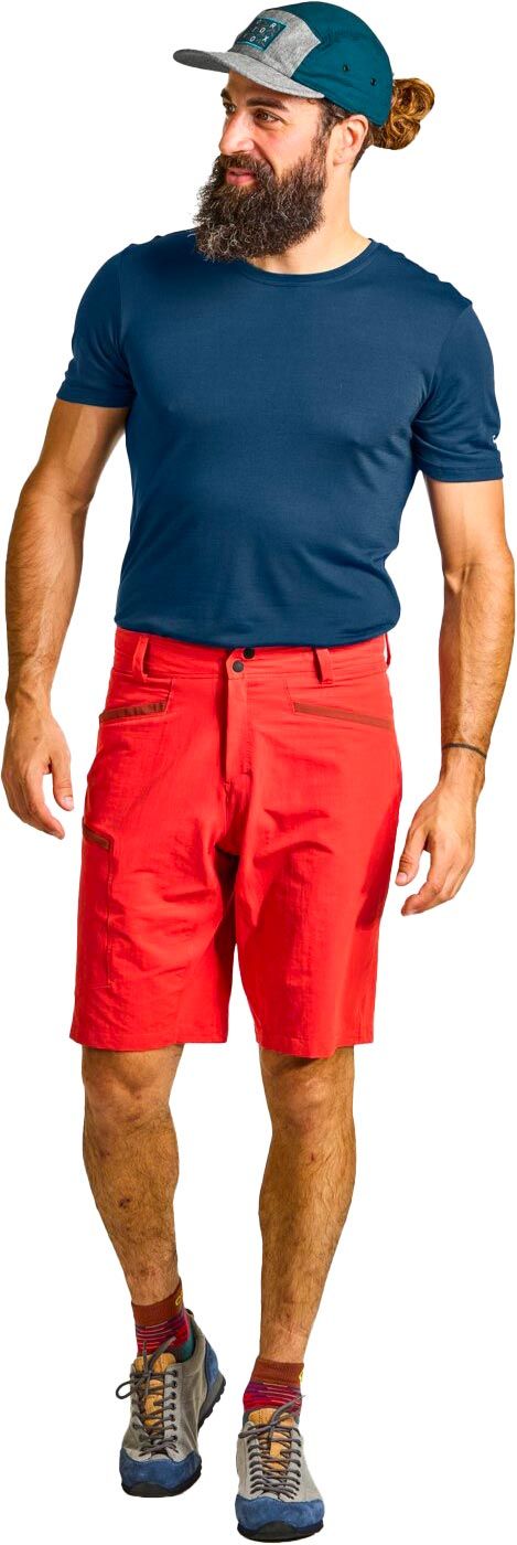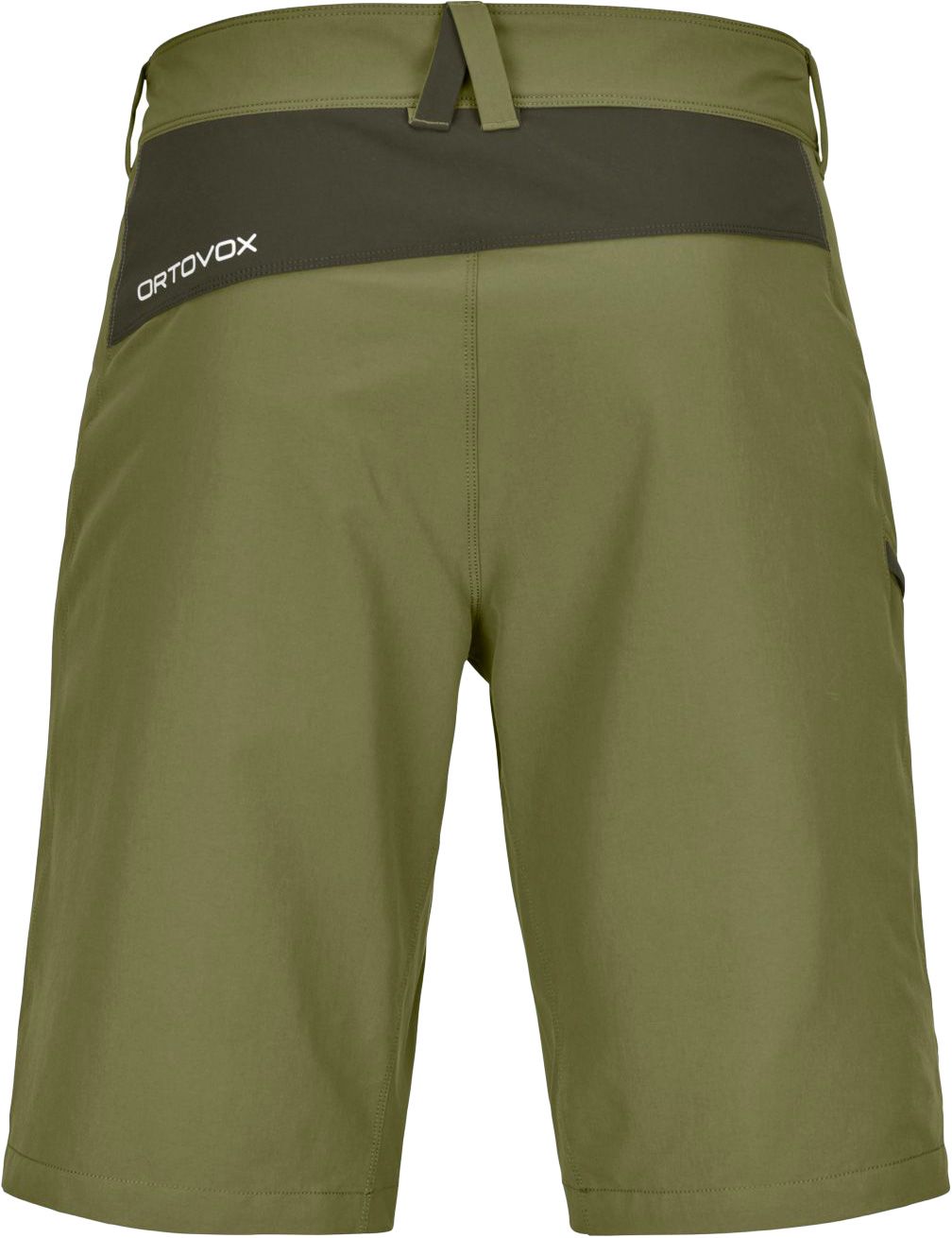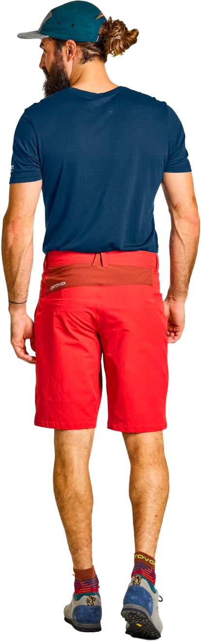 Short Ortovox Pelmo Wild Herbs homme pour l’alpinisme : matière légère, extensible et résistante à l’abrasion, mesh mérinos respirant à la ceinture et dans les poches, liberté de mouvement assurée.