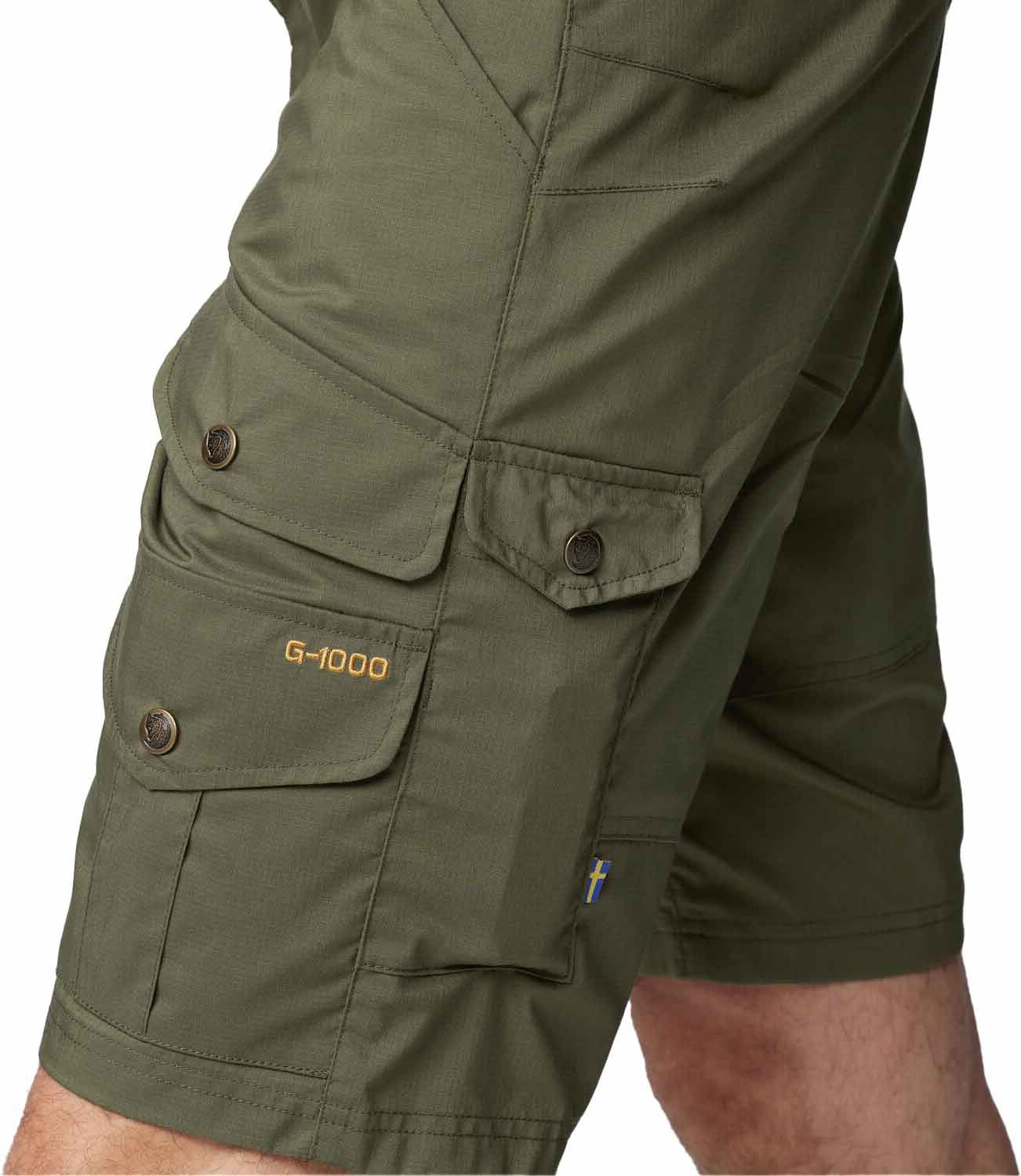 Short de randonnée Fjällräven Vidda Pro Lite Shorts Fossil pour homme, en tissu G-1000® Air Stretch léger et résistant avec renforts arrière, passants de ceinture et multiples poches latérales, idéal pour les sorties outdoor par temps chaud.
