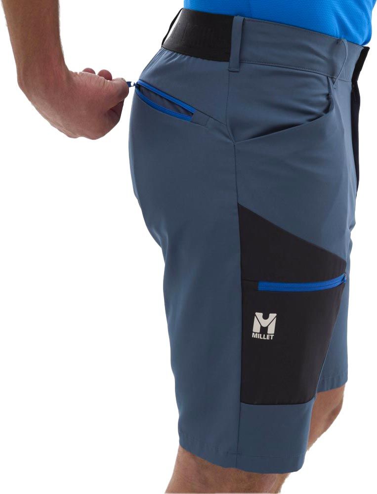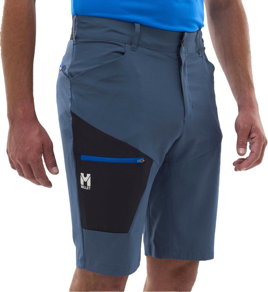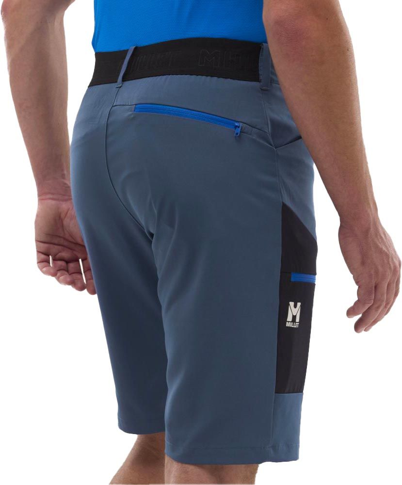 Short de randonnée Millet Wanaka Stretch Short III Dark Denim pour homme, en Drynamic™ Light 4 Way Stretch pour une liberté de mouvement maximale. Ceinture élastiquée latérale, entrejambe articulé, 3 poches pratiques.