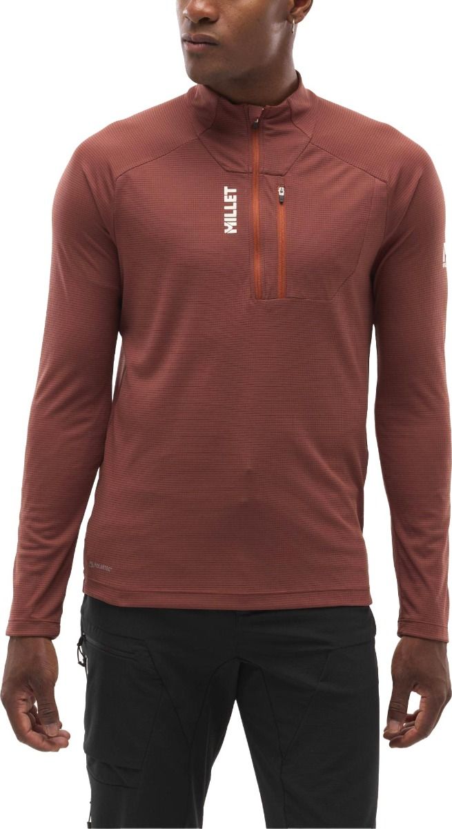 T-shirt technique Millet Kamet TS Zip LS Cinnamon pour homme, en Polartec® Power Dry recyclé, col zippé, antibactérien et anti-UV, idéal en alpinisme ou 3 saisons.