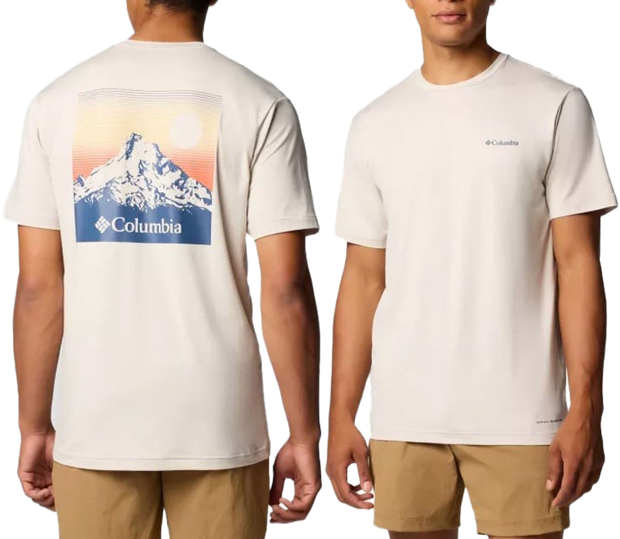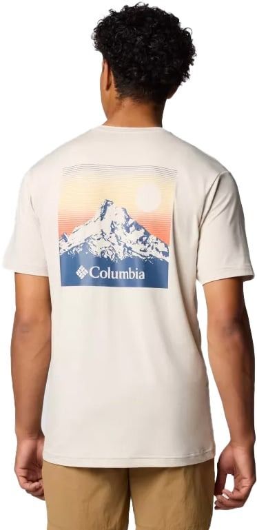 T-shirt Columbia Kwick Hike Back Graphic SS Tee homme, technologie Omni-Wick™ évacuant l’humidité pour rester au sec, coupe active et graphisme dos pour randonnée ou sortie décontractée.
