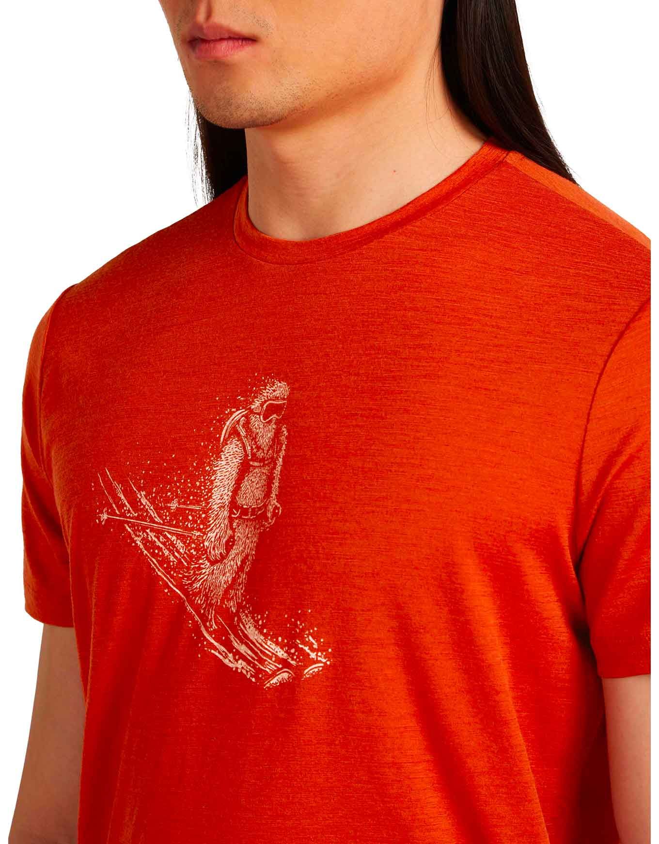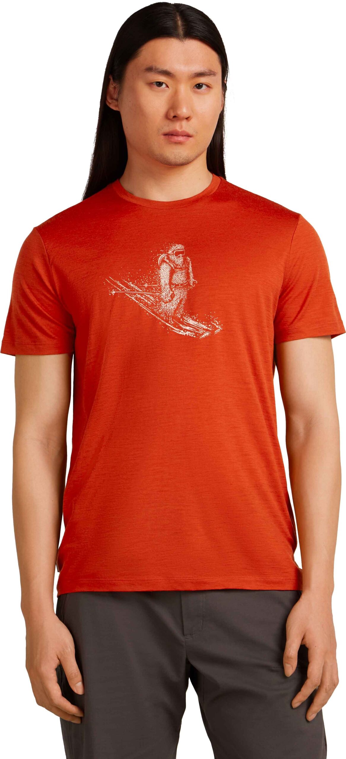 Le t-shirt Icebreaker Merino 150 Tech Lite SS Tee Skiing Yeti Agate pour homme, en laine mérinos 100 %, régule la température, résiste aux odeurs et offre un confort sans frottement grâce aux coutures décalées.