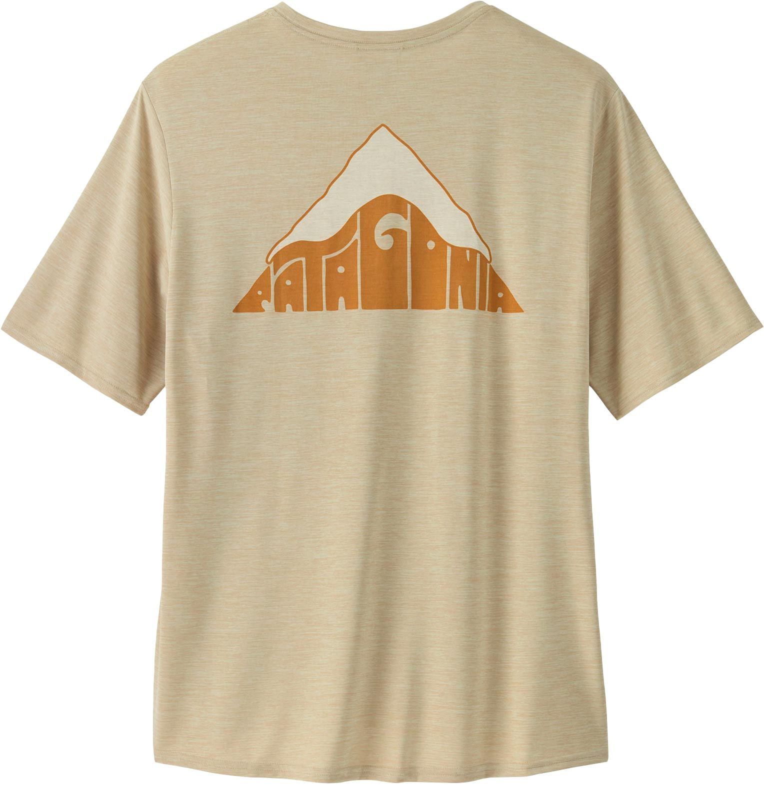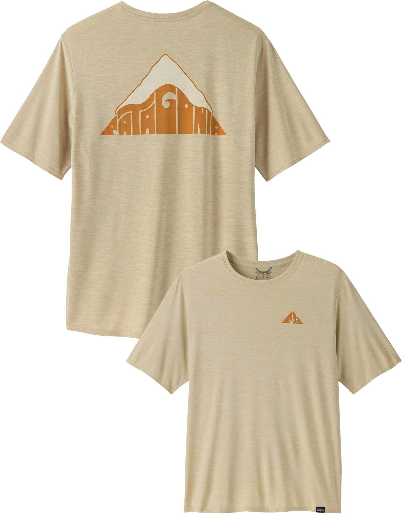 Le t-shirt Patagonia Cap Cool Daily Graphic Shirt Lands Driftways Pumice X-Dye pour homme combine la technologie Capilene® Cool pour une évacuation rapide de la transpiration, le traitement HeiQ® Pure pour le contrôle des odeurs et des manches sans frottement garantissant liberté de mouvement lors de la randonnée et des activités sportives.
