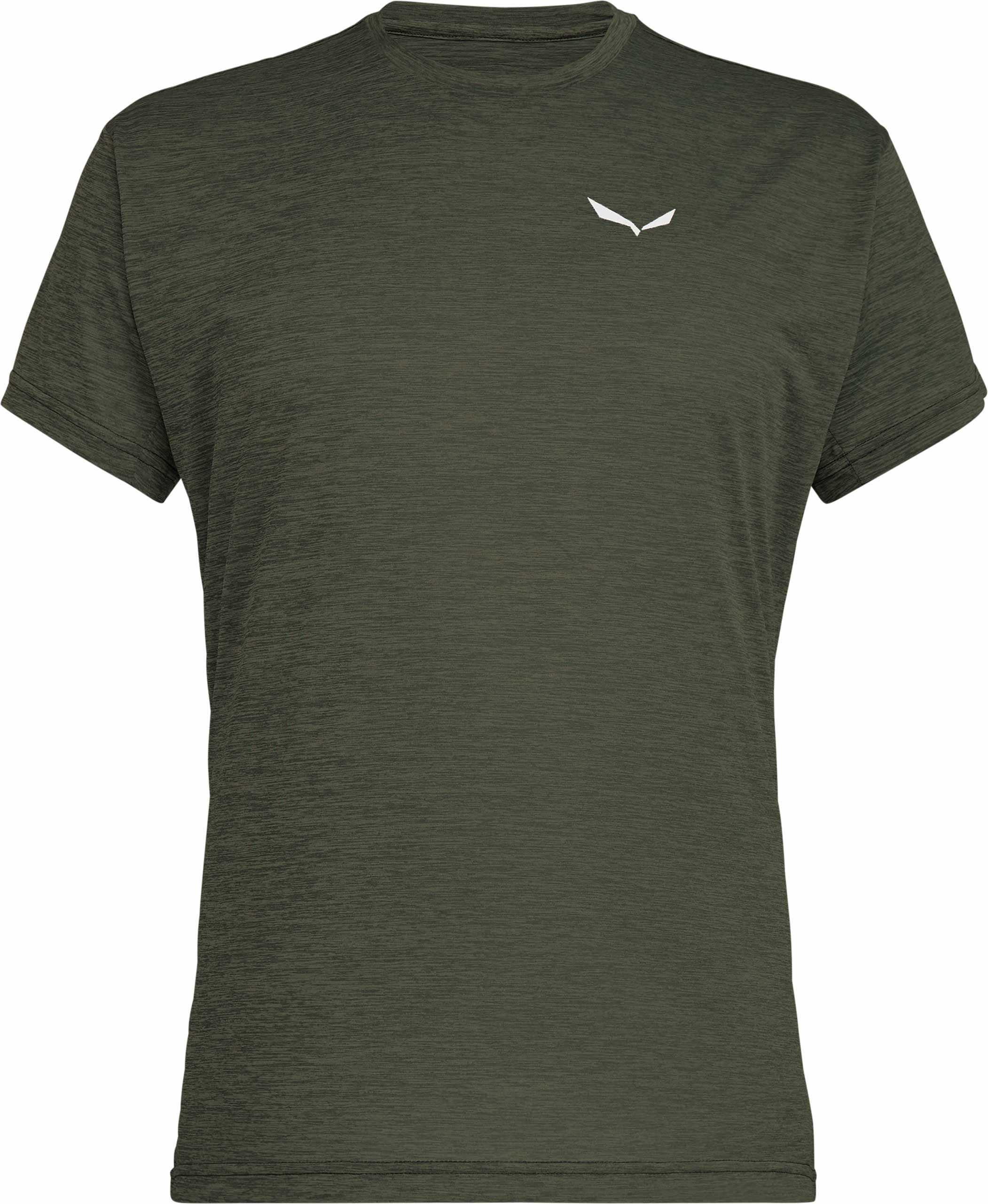 T-shirt Puez Melange Dry Faded Green Melange homme Salewa en polyester DRY’TON extensible 4 voies, évacue l’humidité et sèche vite pour la randonnée et le trekking.