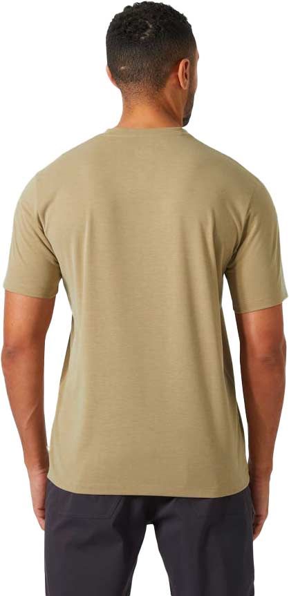 T-shirt à manches courtes Helly Hansen Skog Graphic T-Shirt Pebble homme, en polyester recyclé avec élasthanne, gère l’humidité, offre liberté de mouvement et protection solaire UPF 50+ pour la montagne.