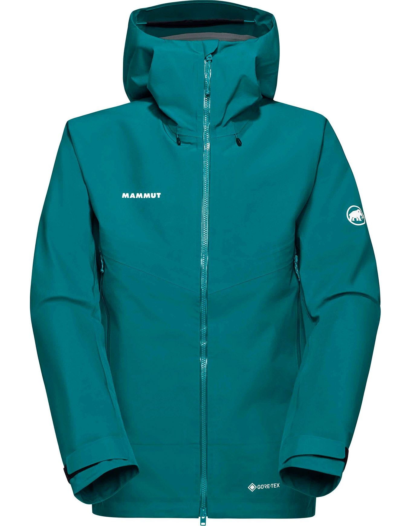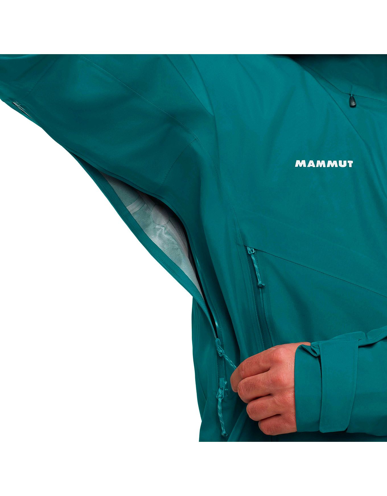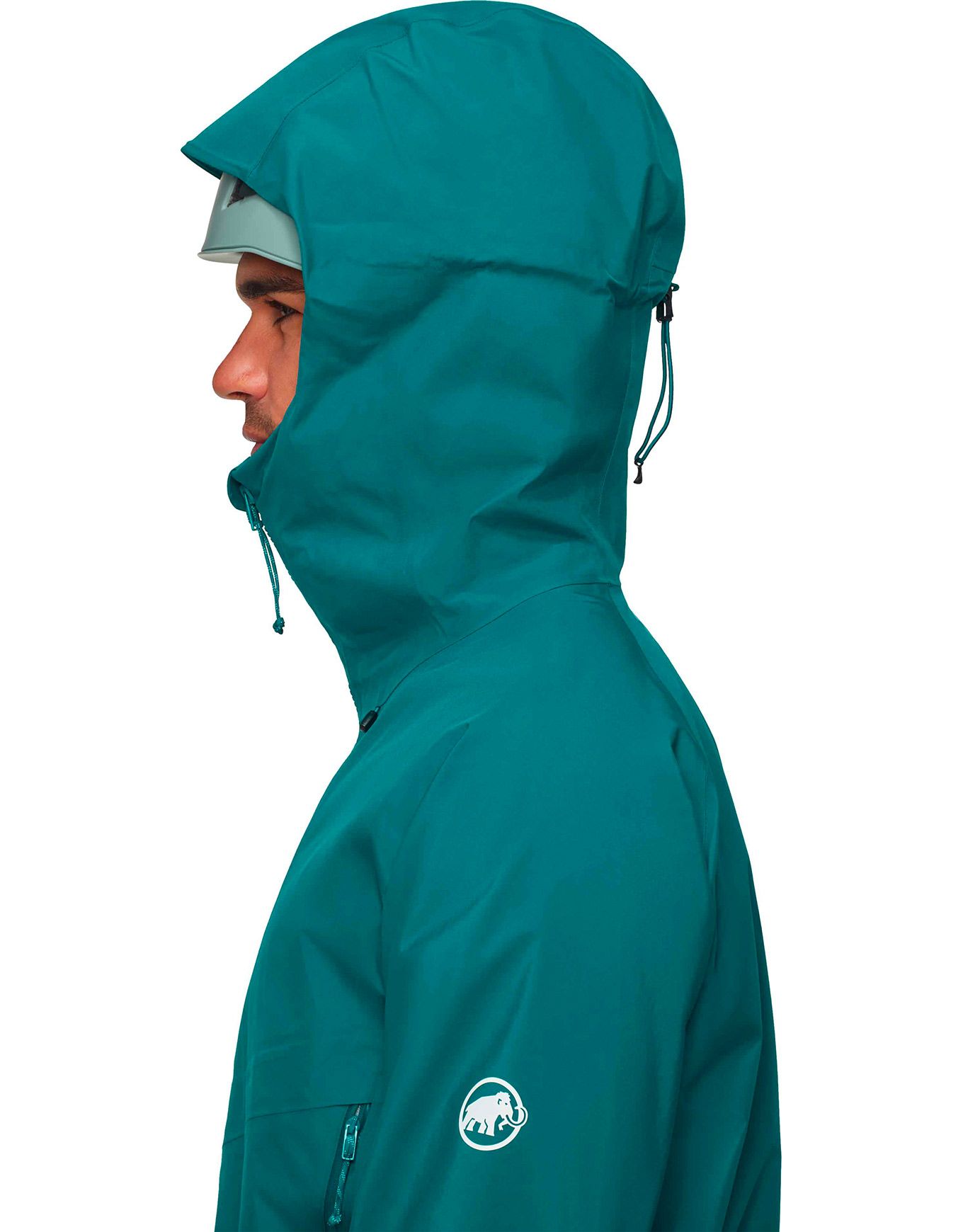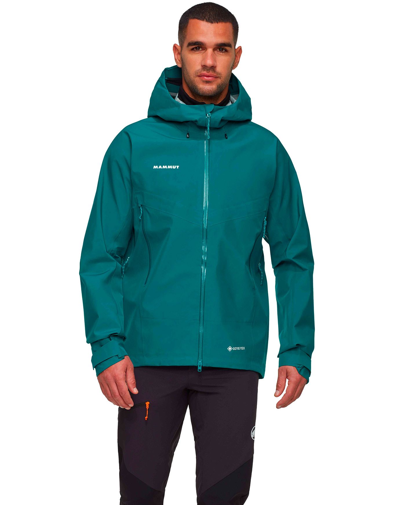 La veste technique Mammut Crater IV HS Hooded Jacket pour homme conjugue membrane ePE GORE-TEX, fermetures AquaGuard® et capuche réglable casque-compatible pour une protection fiable en ski de randonnée, alpinisme ou randonnée.