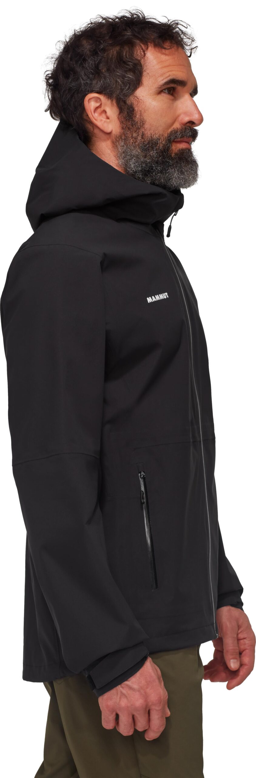 La veste de randonnée Mammut Linard Guide HS Hooded Jacket Black pour homme allie membrane Mammut Dry Tour imperméable et respirante, tissu extensible doux, capuche réglable et ventilations sous les bras pour un confort optimal sur sentier.