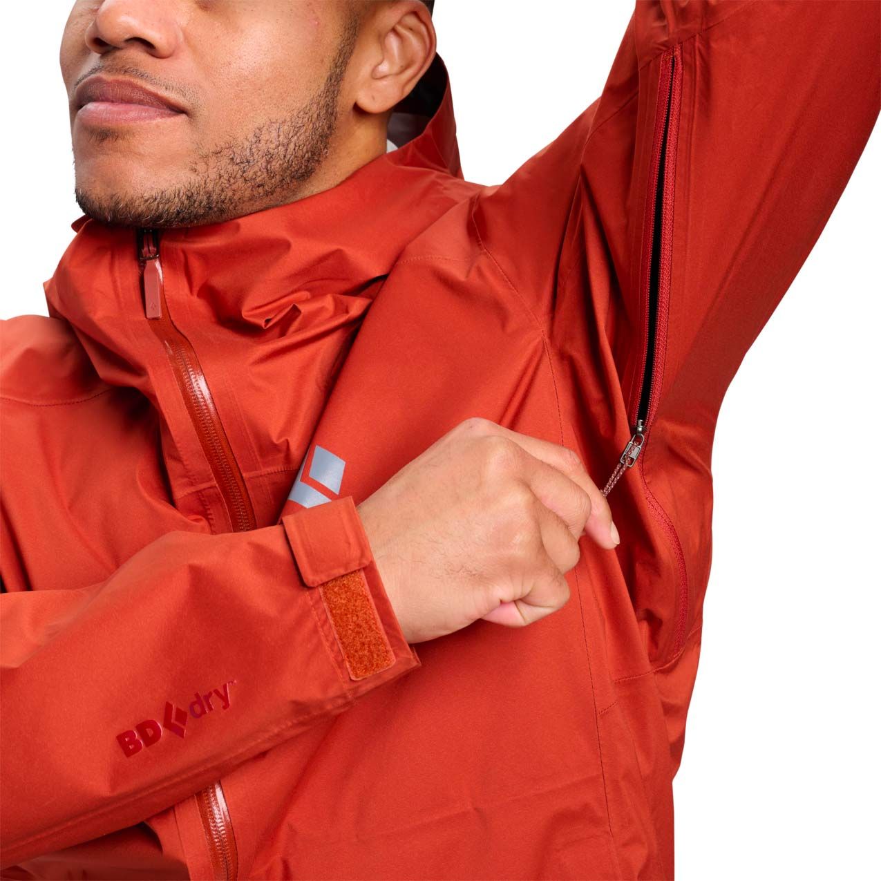 Veste Black Diamond Fineline Stretch Shell Burnt Sienna pour homme, imperméable et respirante BD.dry™, stretch pour la liberté de mouvement, capuche casque, poches sécurisées, compressible dans sa poche.