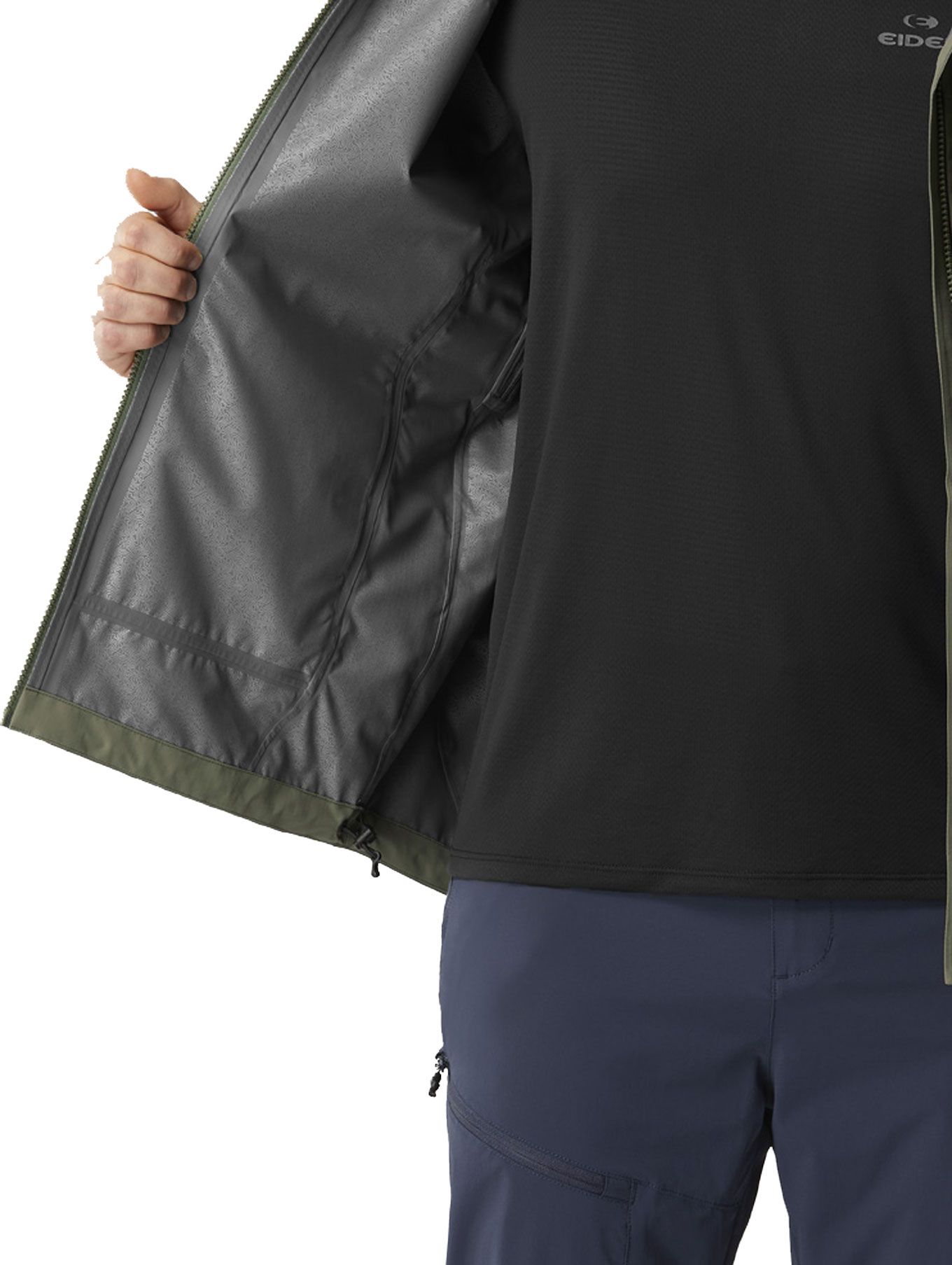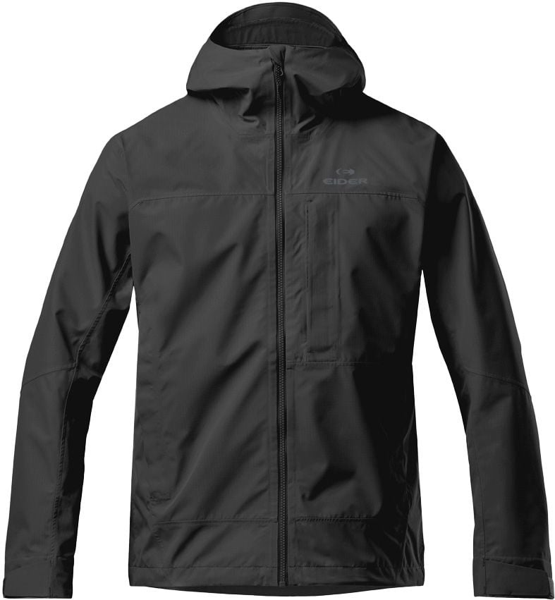 Veste de randonnée EIDER Mist Jkt Black pour homme, en ripstop partiellement recyclé, respirant et résistant à l’eau, avec capuche réglable casque-compatible, fermeture Aquaguard YKK® et liberté de mouvement assurée.