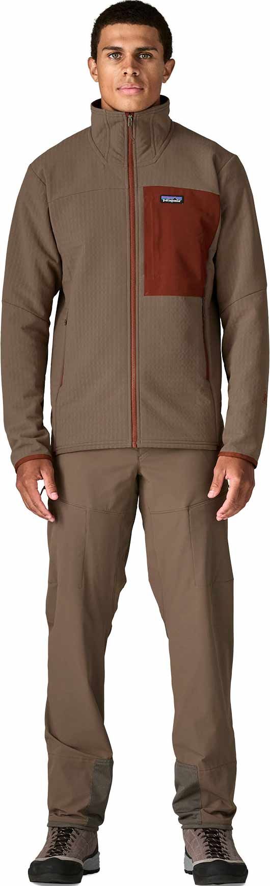 Veste intermédiaire Patagonia R2 TechFace Jkt Marlow Brown pour homme, chaude, respirante et résistante à l’abrasion avec traitement déperlant durable pour le multi-activité en montagne.