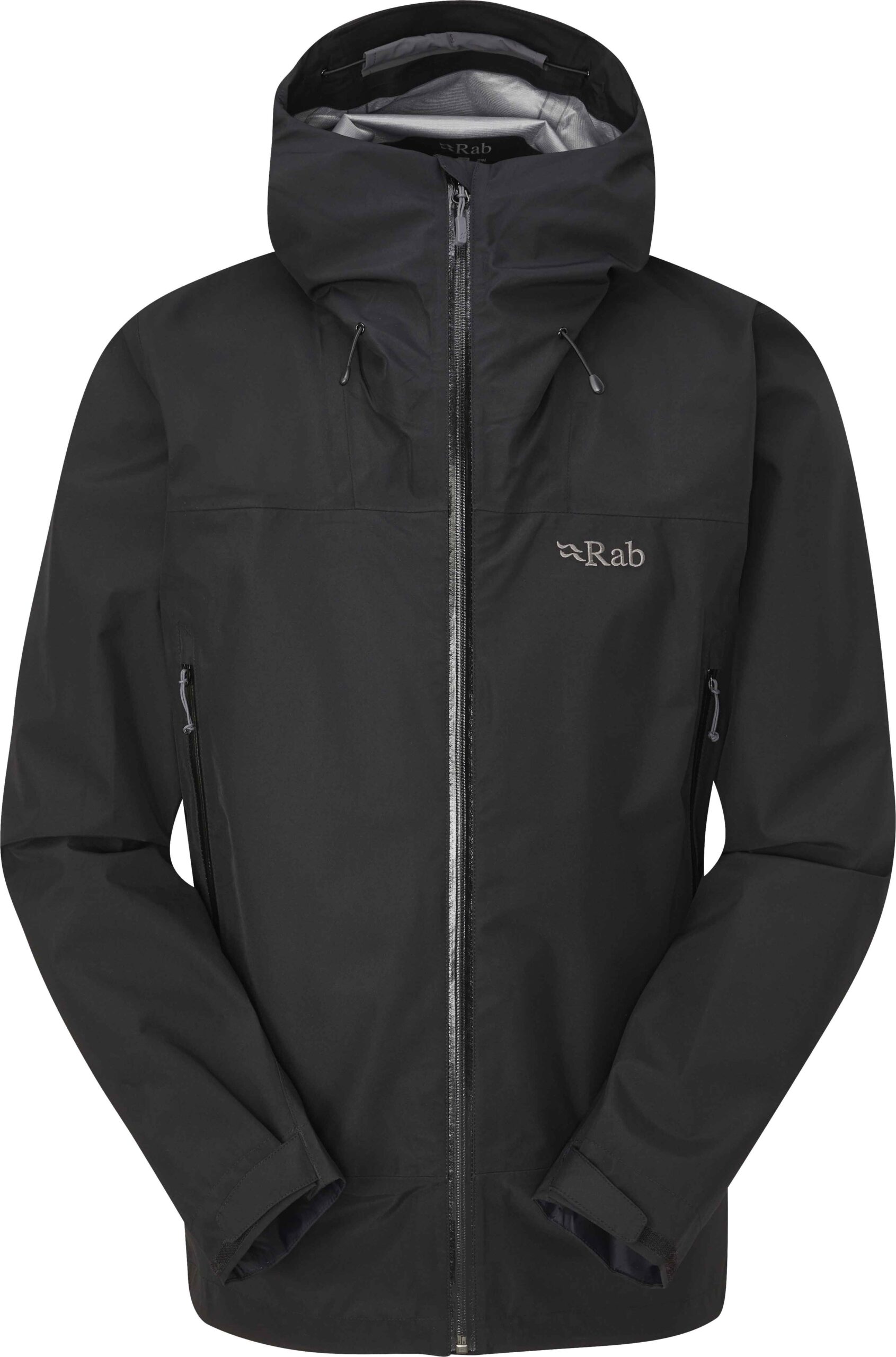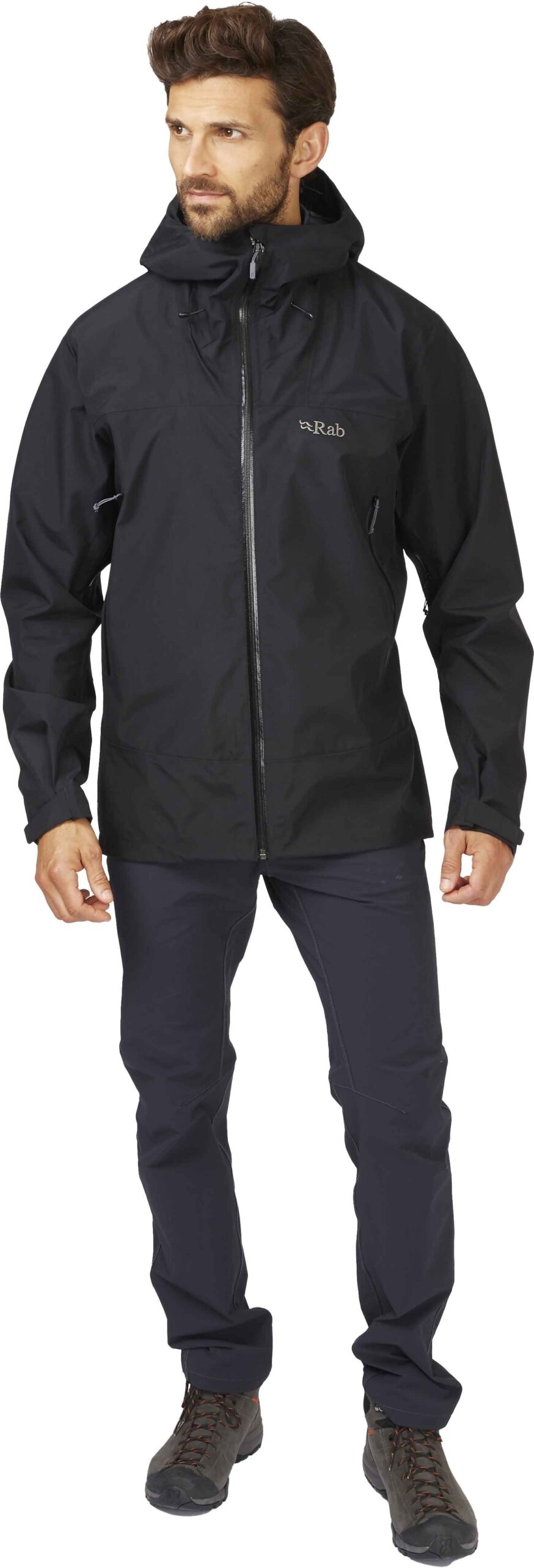 Veste Rab Namche GTX Jacket pour homme : membrane GORE-TEX ePE recyclée sans PFAs, imperméable, coupe-vent et respirante, avec capuche rigide, ventilations sous les bras et manches articulées.