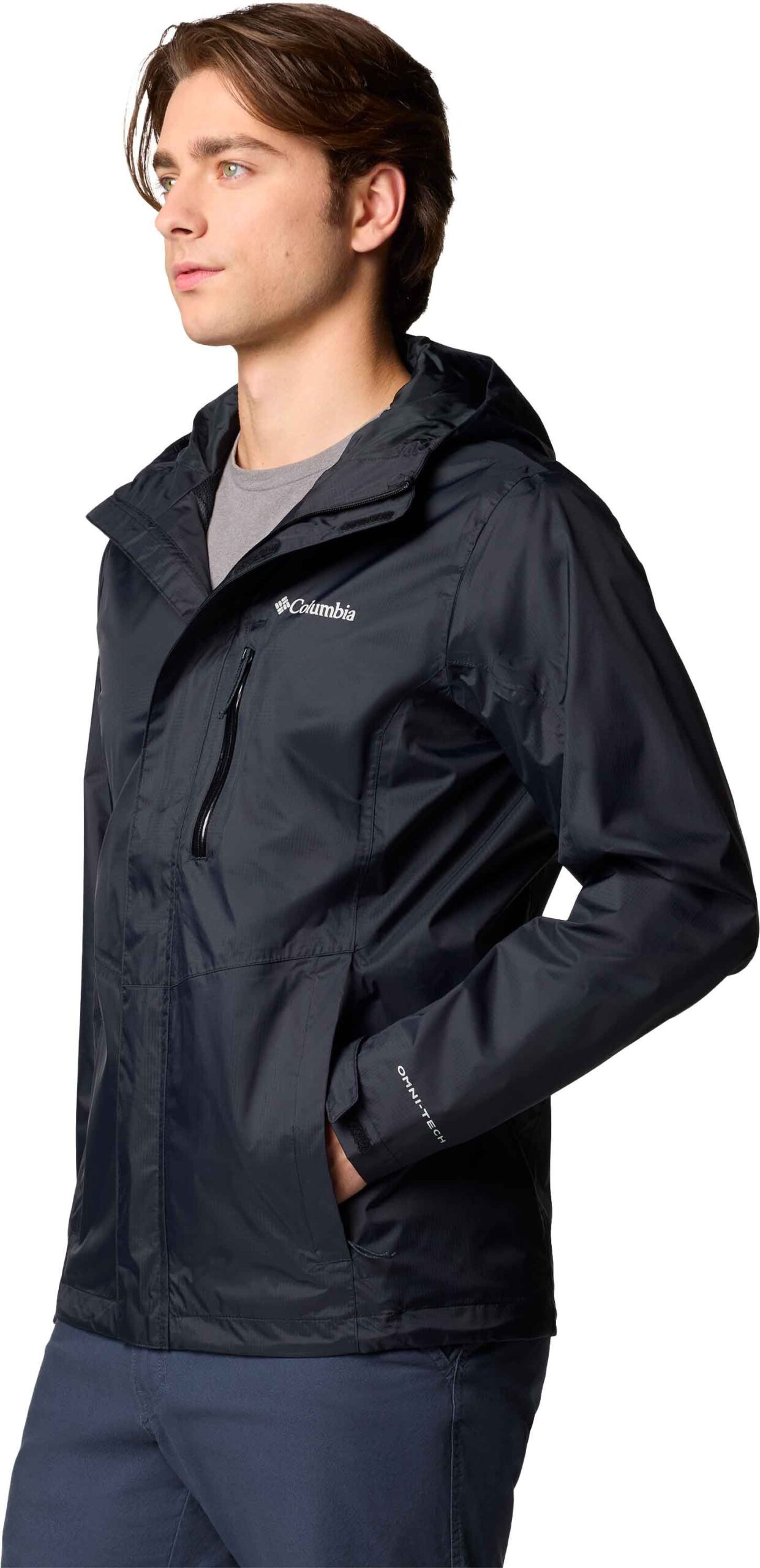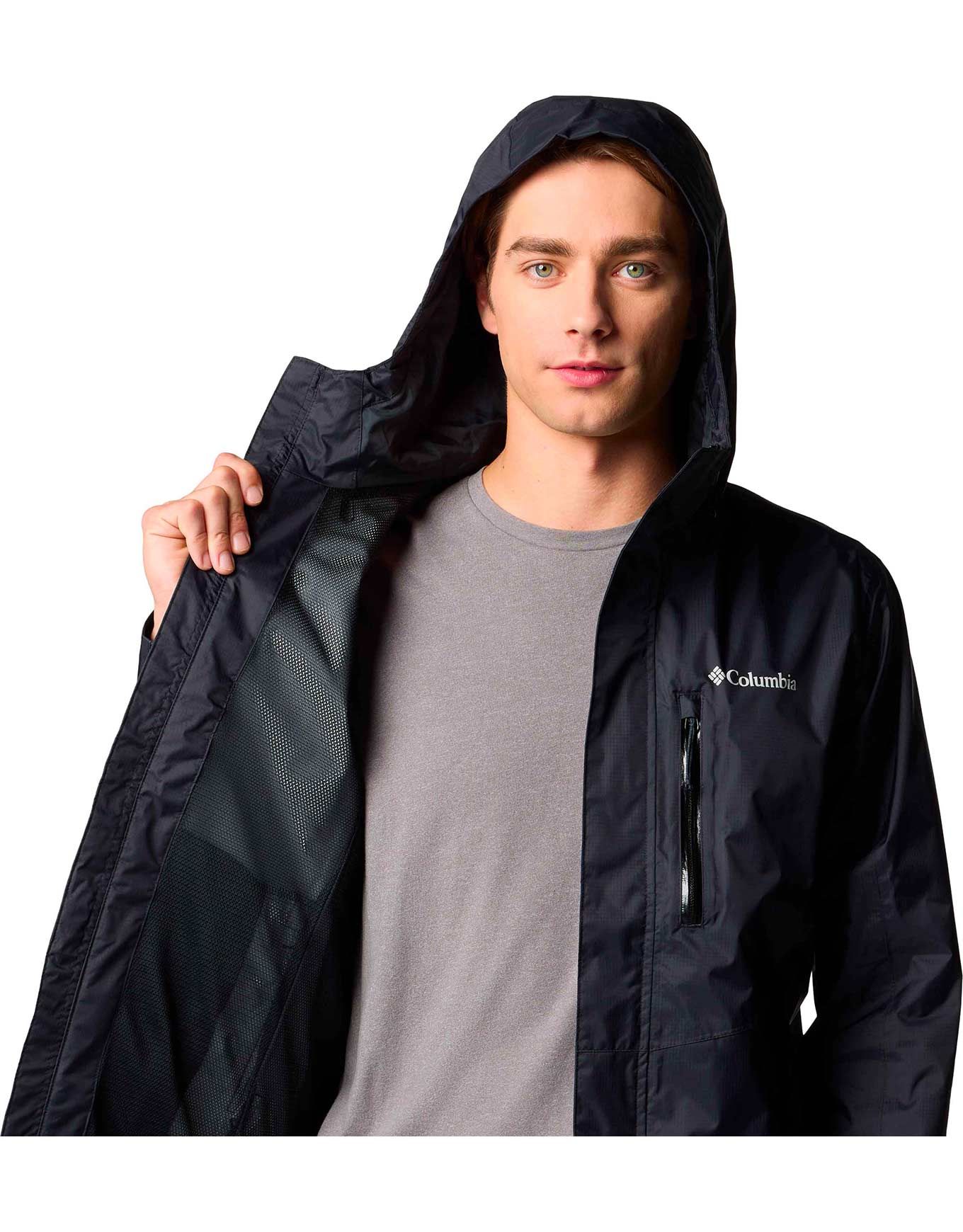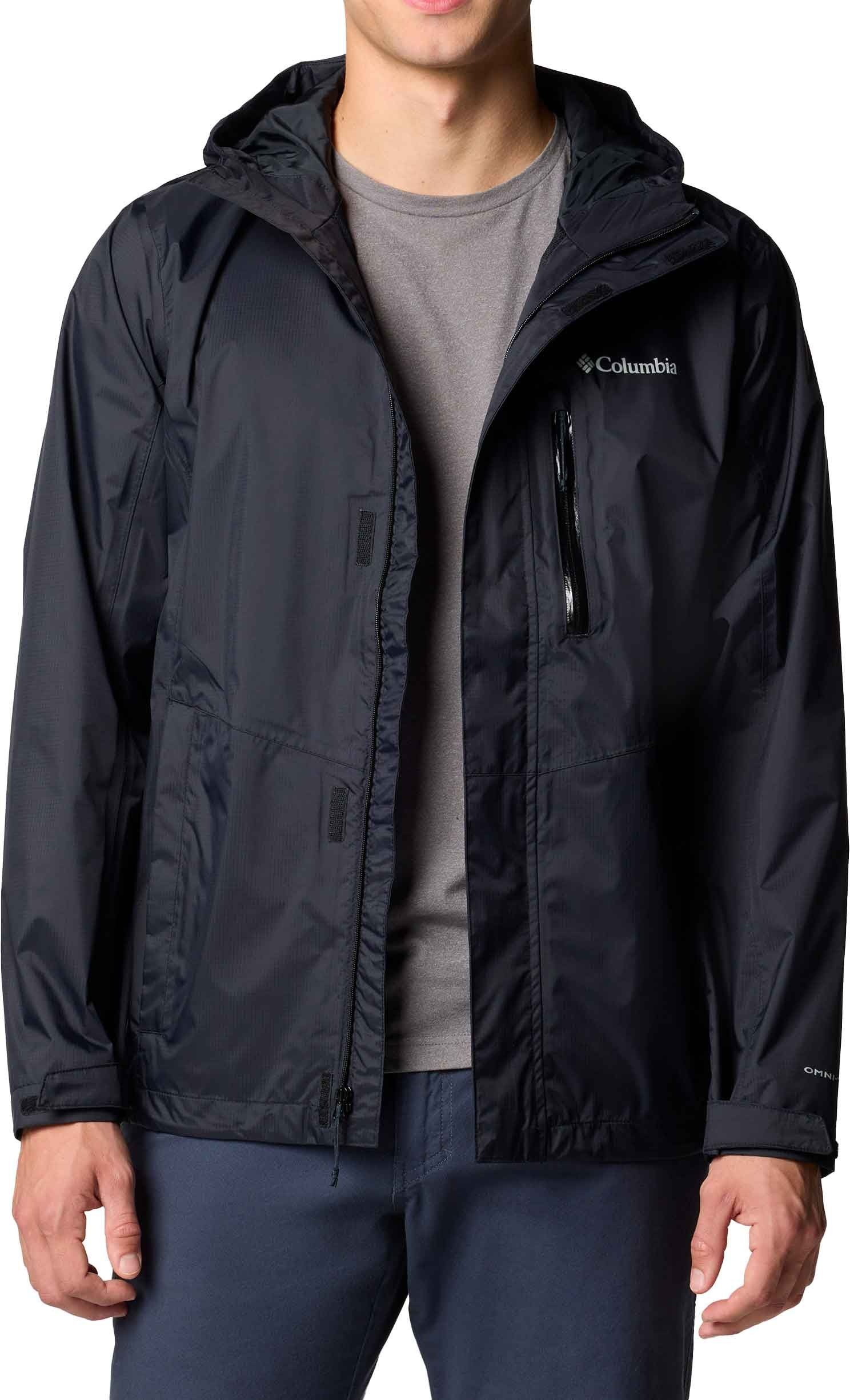 Veste Columbia Pouring Adventure III Jacket Black imperméable et respirante Omni-Tech™ pour homme, avec capuche ajustable et poches zippées.