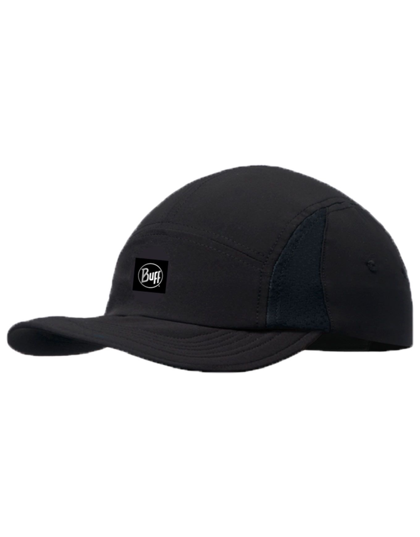 Casquette 5 Panel Go Solid Black Buff : accessoire running et trail respirant, séchage ultra-rapide, ajustement arrière et bandeau anti-transpiration pour un confort optimal.