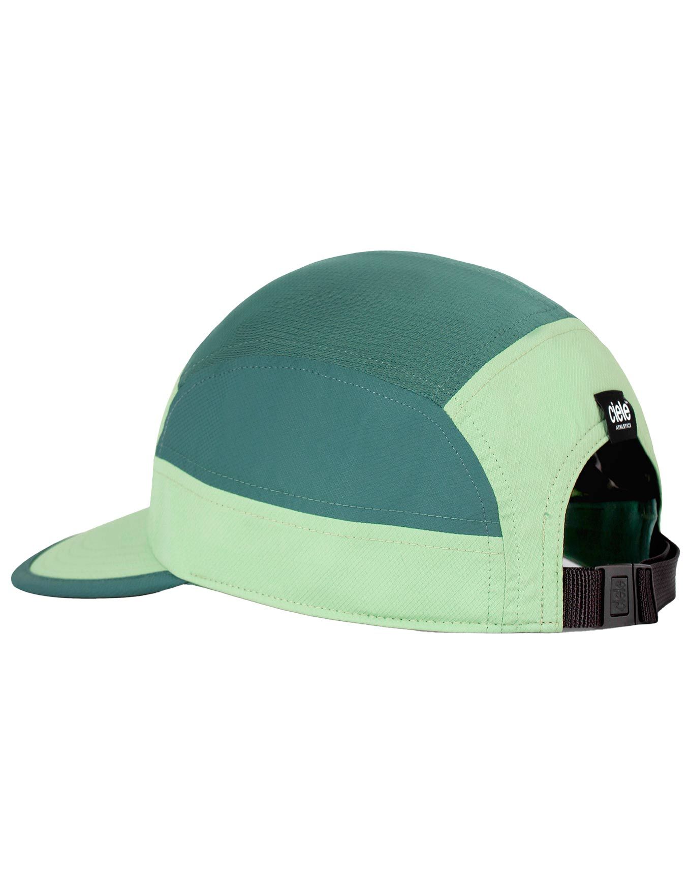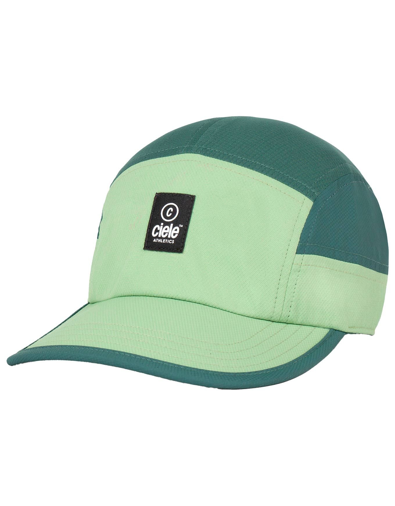 Casquette Ciele GOCap SC Classic Cplus Box Pistachio Silver Pine unisexe à visière courbée, légère en COOLmatic™ recyclé, mesh aéré, UPF +40, séchage rapide et pliable pour le running.