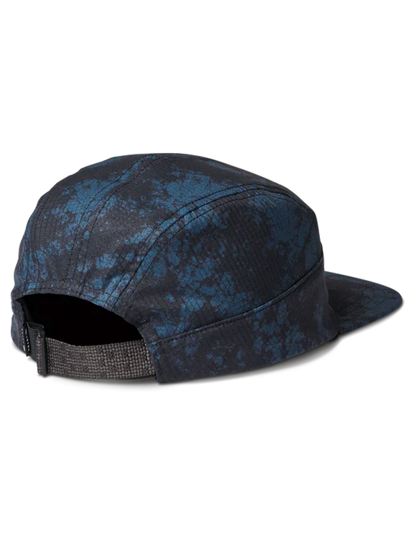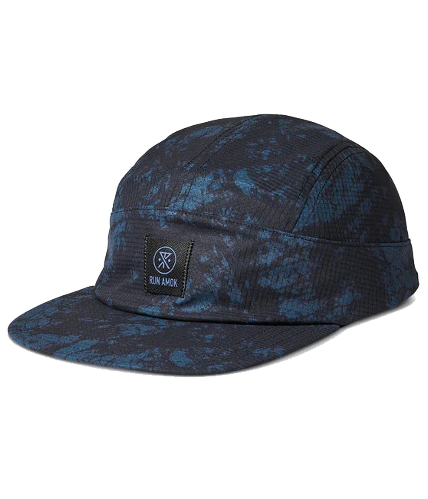 Casquette Roark Run Bless Up Camper Cap Navy Tie Dye homme, légère et respirante, conçue pour le trail running avec 5 panneaux souples, visière EVA et taille réglable pour protection et confort.