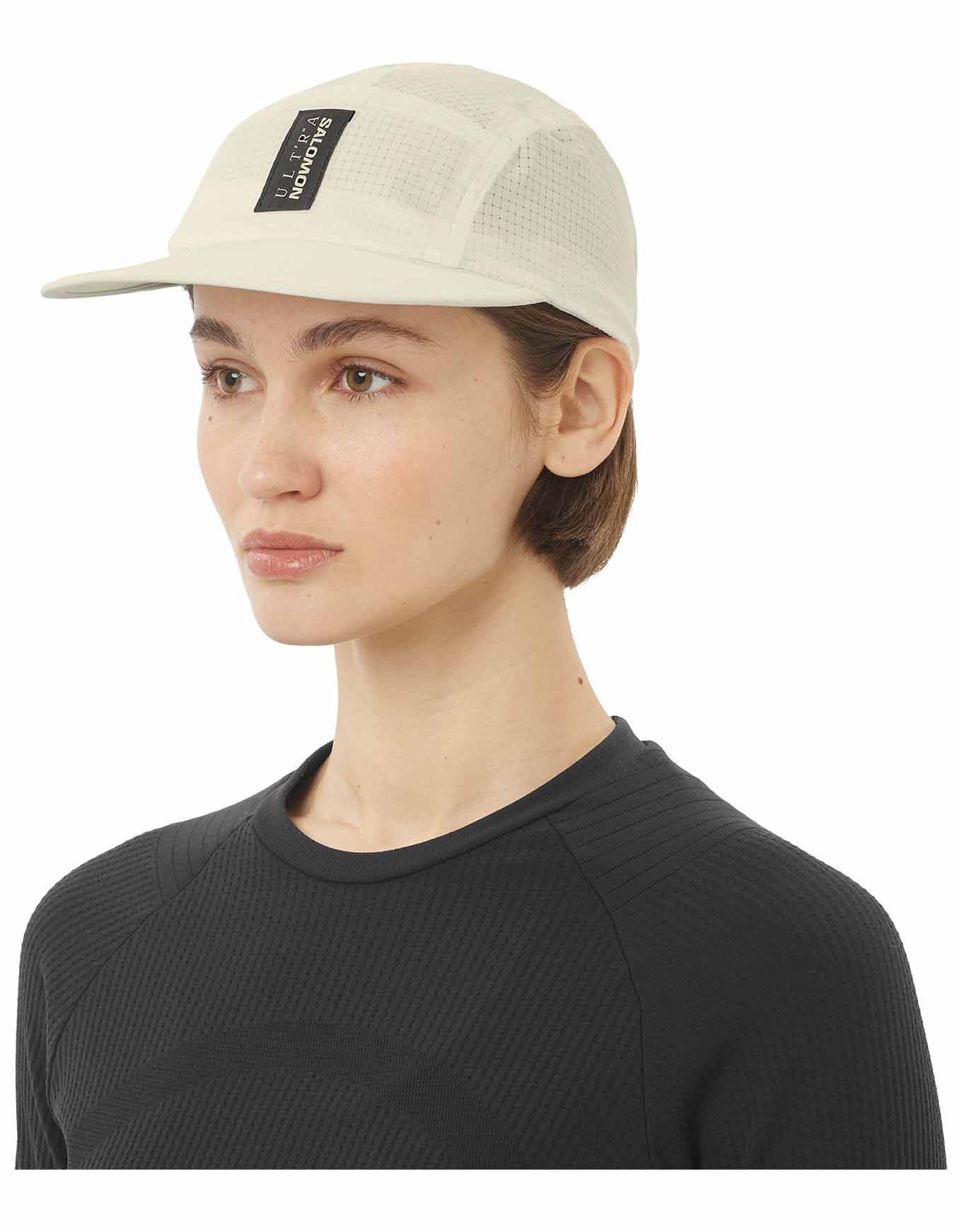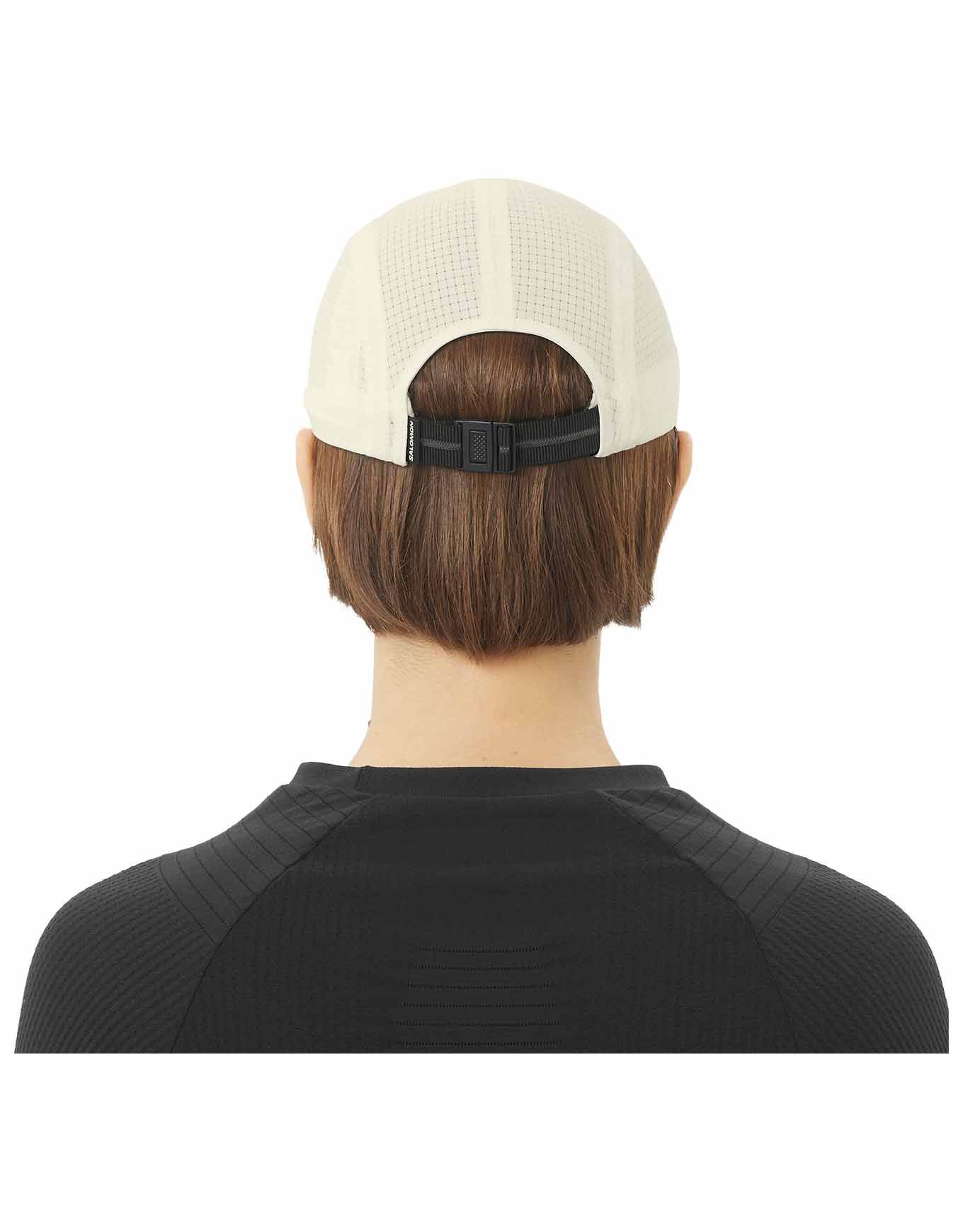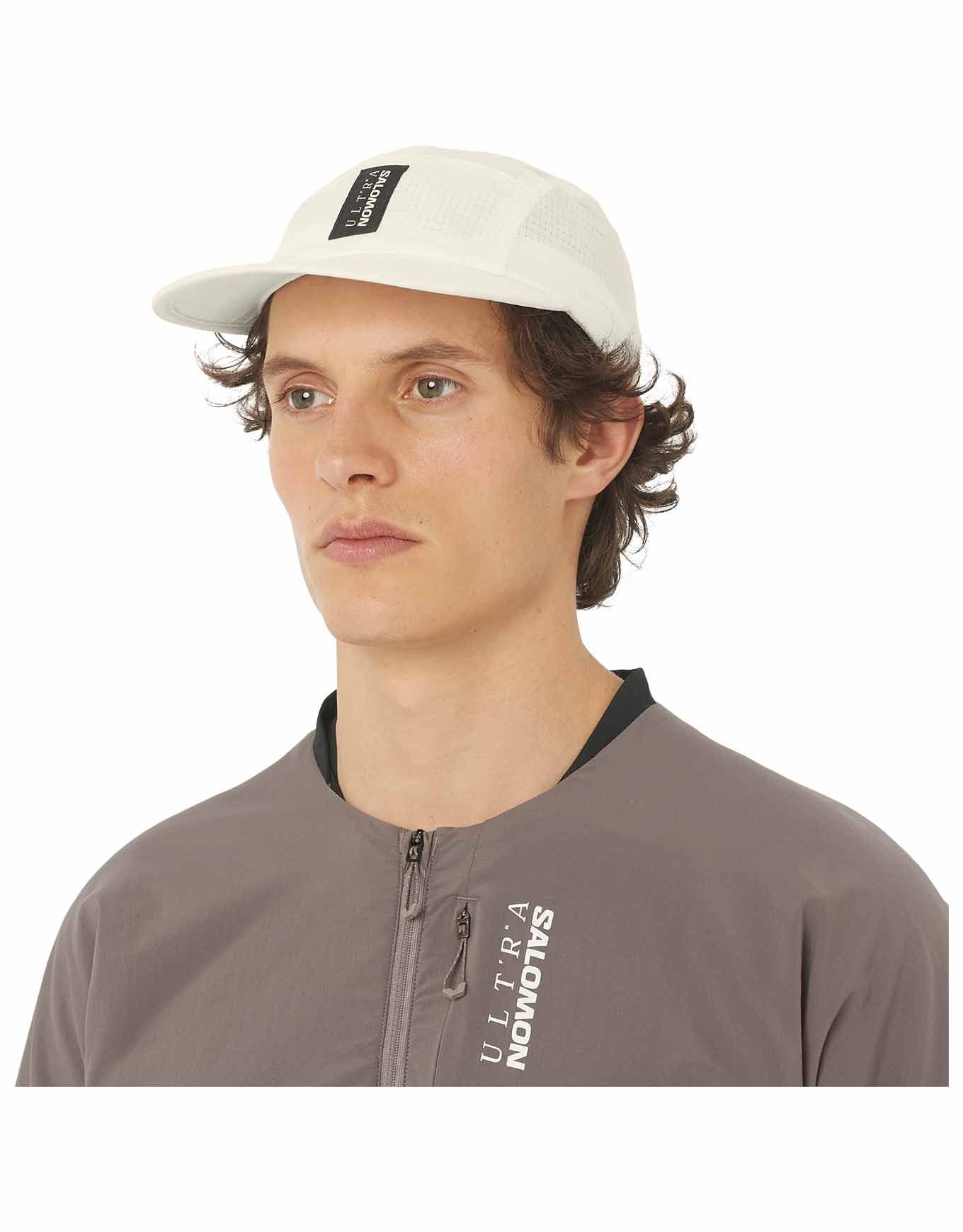 Casquette S/Lab Ultra Summer Cap Vanilla Ice Salomon : protection légère et aérée pour les longues sorties running estivales, avec fit réglable 5 pans et cordon de serrage.