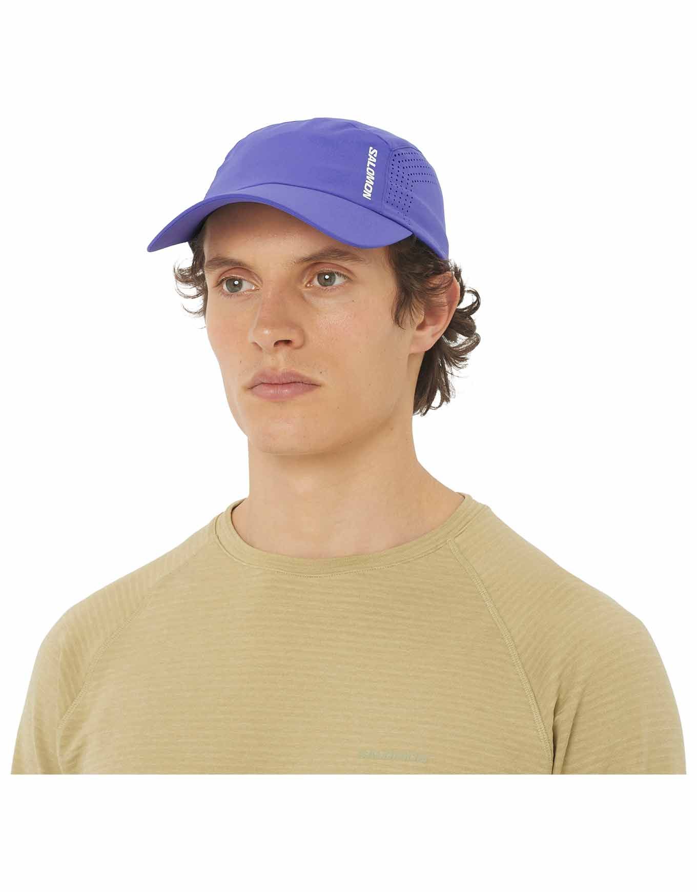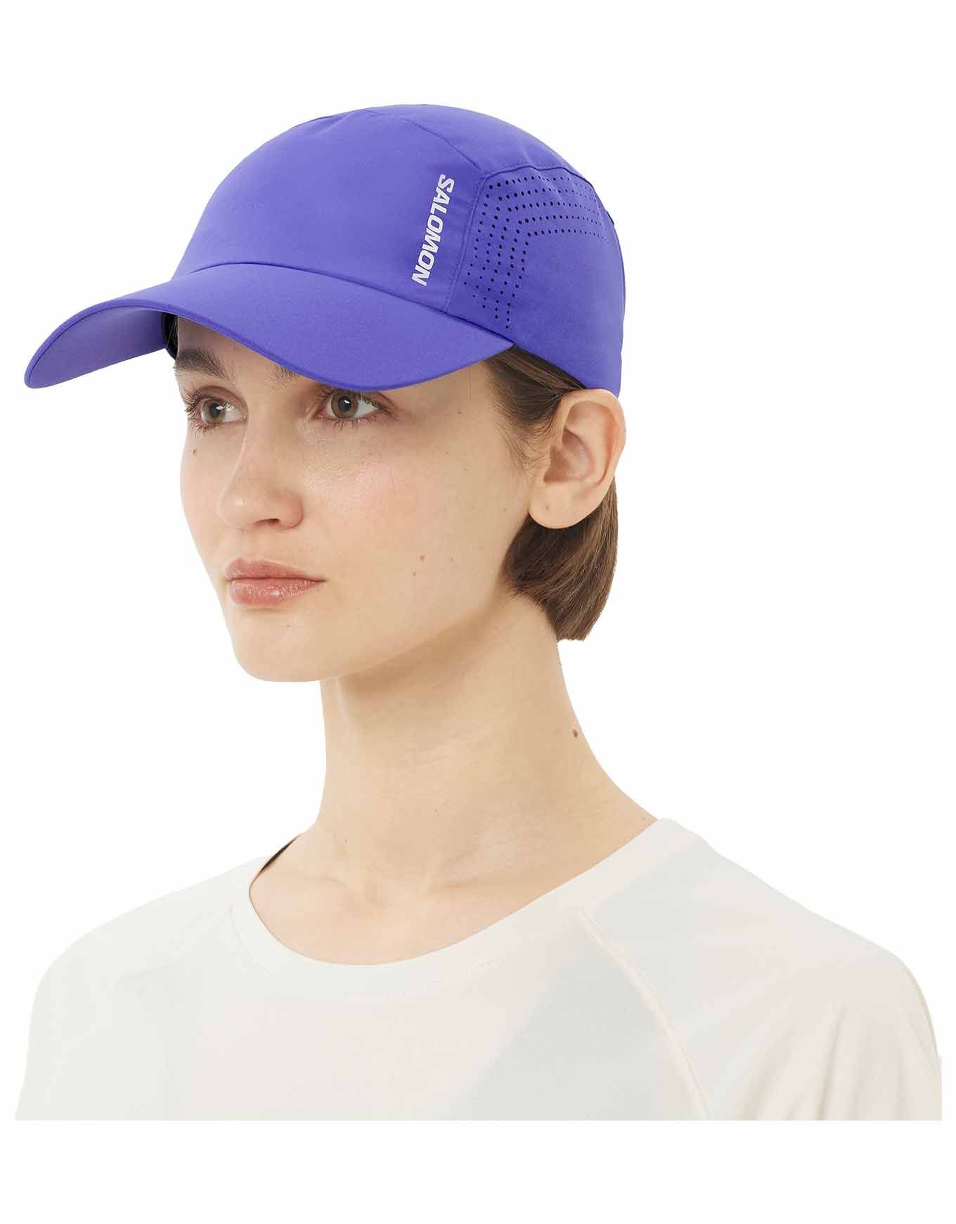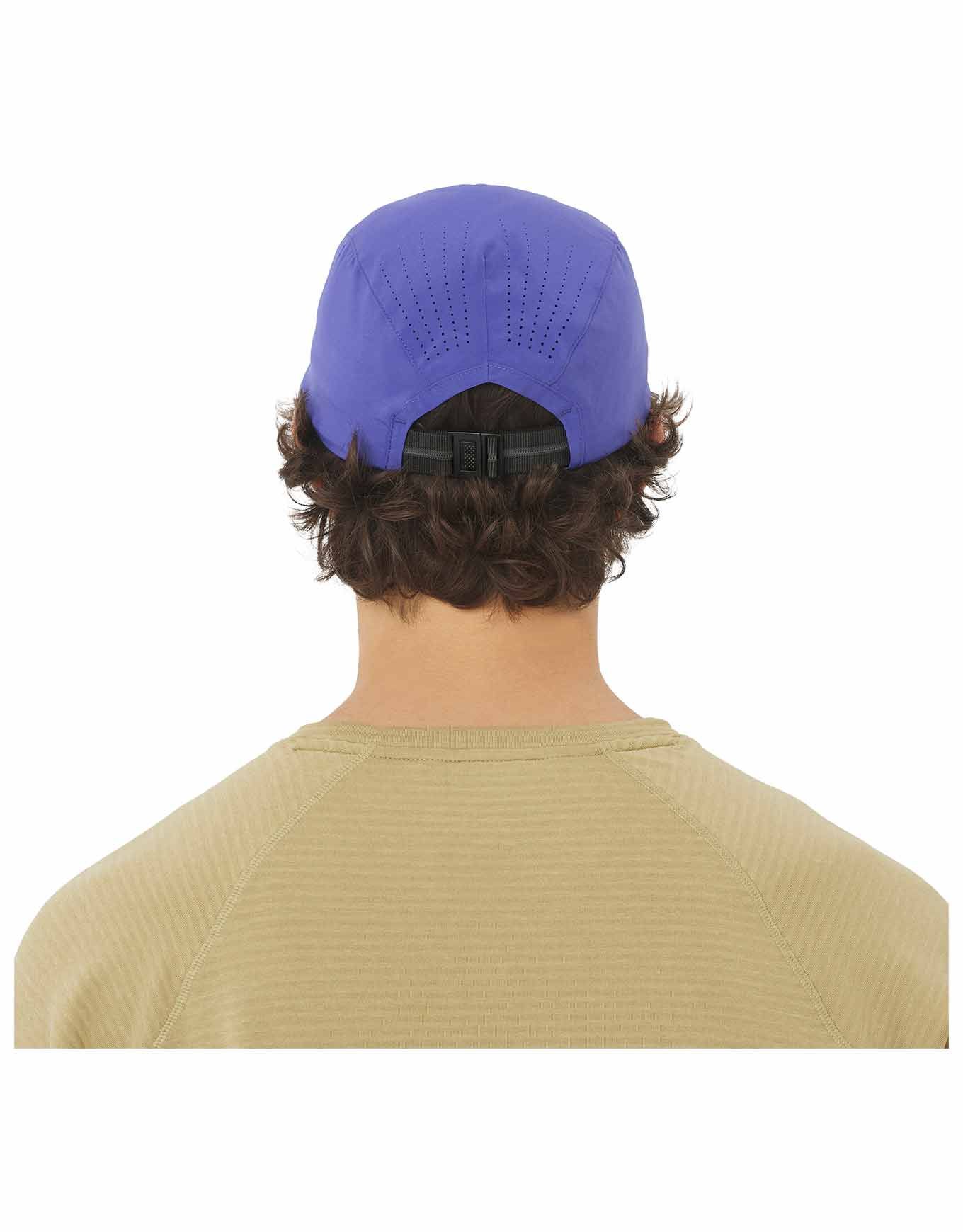 Casquette de running Salomon Shakeout Cap Liberty : matières légères recyclées, séchage rapide, zones d’aération et réglage arrière pour un maintien stable en course estivale.