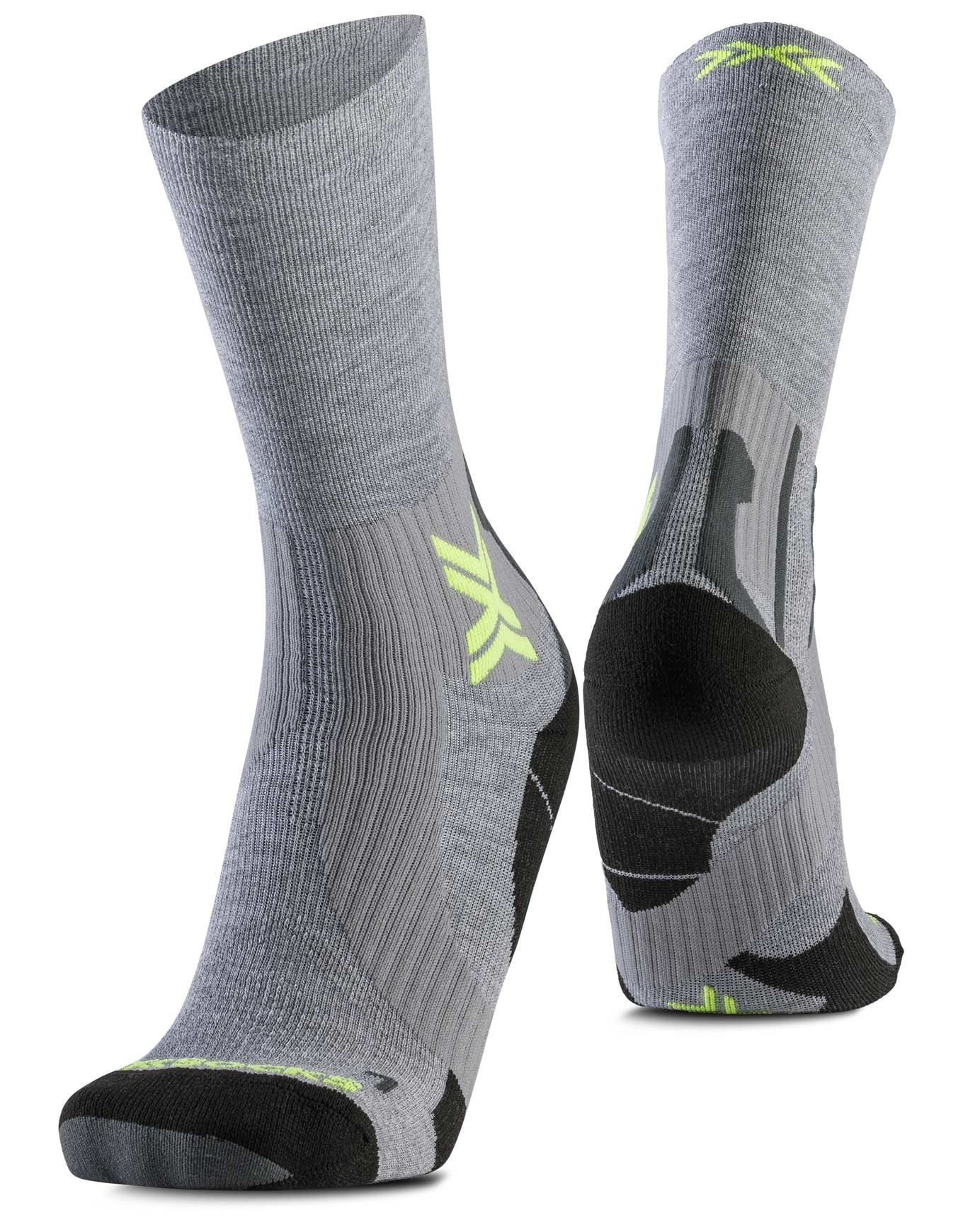 X-Socks Run Perform Warm Crew Black/Light Grey, chaussettes unisexes trail running, protègent tendon d’Achille, thermorégulent par AirConditioning Channel®, gardent pieds au sec sans odeurs.