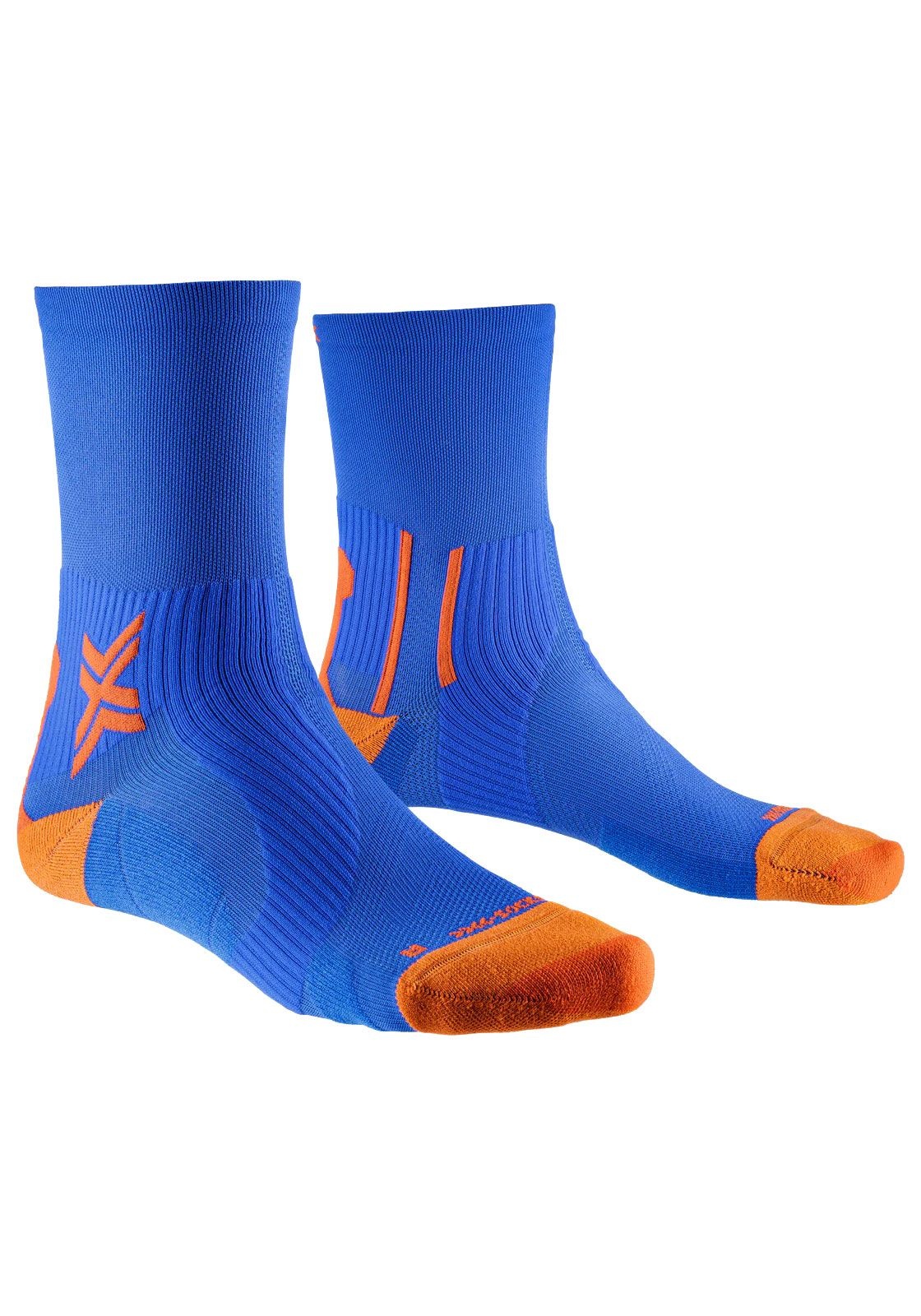 X-Socks Run Perform Warm Crew Twyce Blue/Orange : chaussettes de running trail renforcées, thermorégulées AirConditioning Channel®, protégeant tendon d’Achille et évacuant l’humidité.