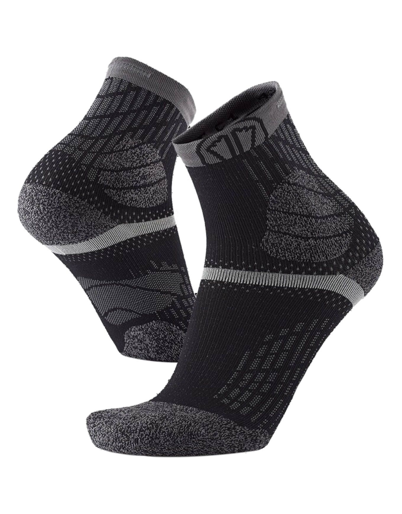 Pensées pour le trail et la course à pied, les chaussettes Trail Protect Black / Grey de la marque Sidas accompagnent le coureur sur tous les types de sentiers. Des renforts ciblés au niveau de la cheville, du talon et de l’avant-pied assurent un confort idéal pendant l’activité. L’adhérence avec la chaussure se trouve améliorée par une bande antidérapante, alors qu’un dispositif de maintien à la cheville offre une stabilité accrue. La technologie Polygyene, combinée à une zone ventilée sous la voûte plantaire, permet d’évacuer l’humidité et de réduire les odeurs. La confection sans coutures ni fils intérieurs apparents maximise le confort au port. Découvrir les catégories associées Chaussettes trail running Vêtements outdoor homme Vêtements trail running