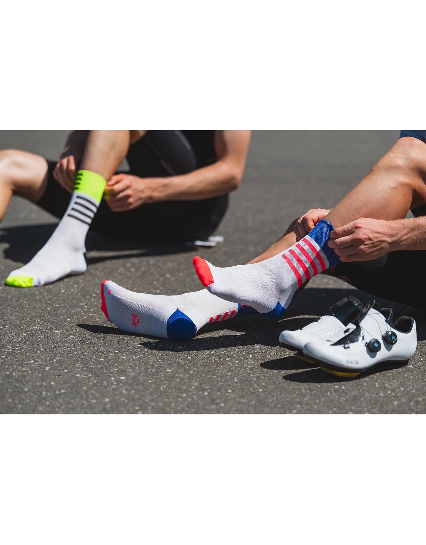 Ces chaussettes combinent légèreté et performance grâce à une microfibre Microlon® et une bande à double épaisseur assurant compression ciblée.