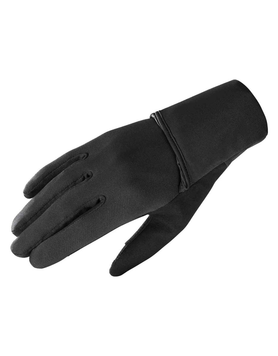 Gants trail running Salomon Fast Wing Winter Glove Deep Black unisexe, stretch léger, paume renforcée, poignet ajusté coupe-vent, index tactile.