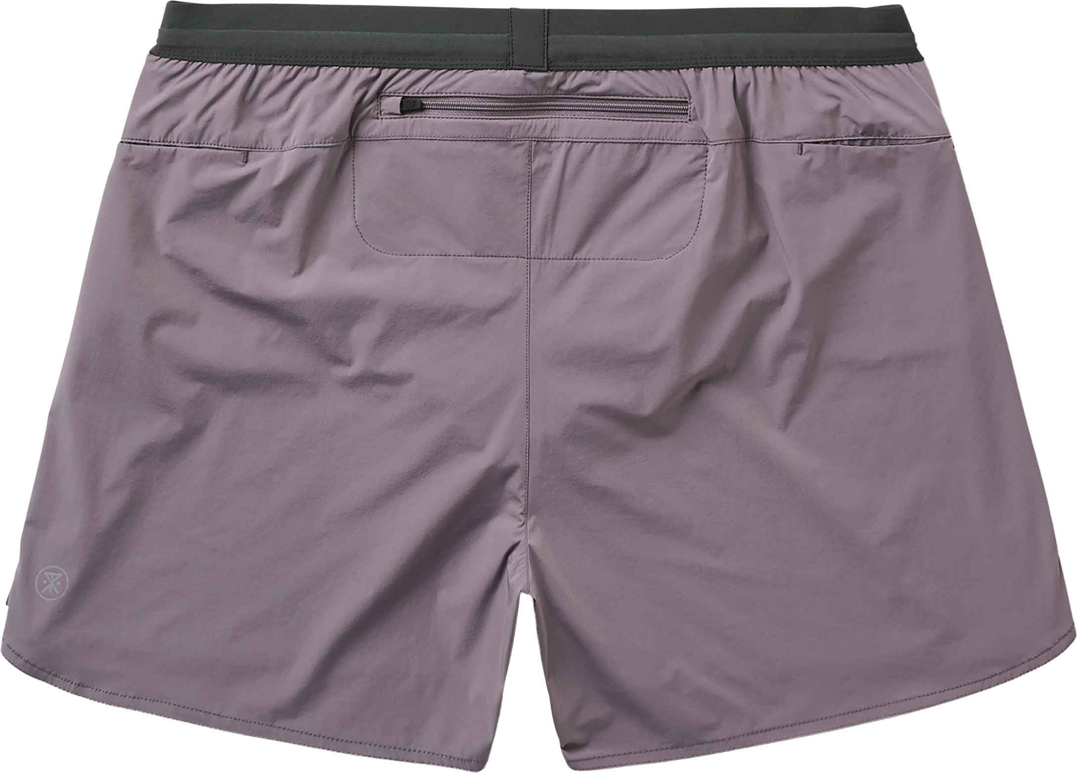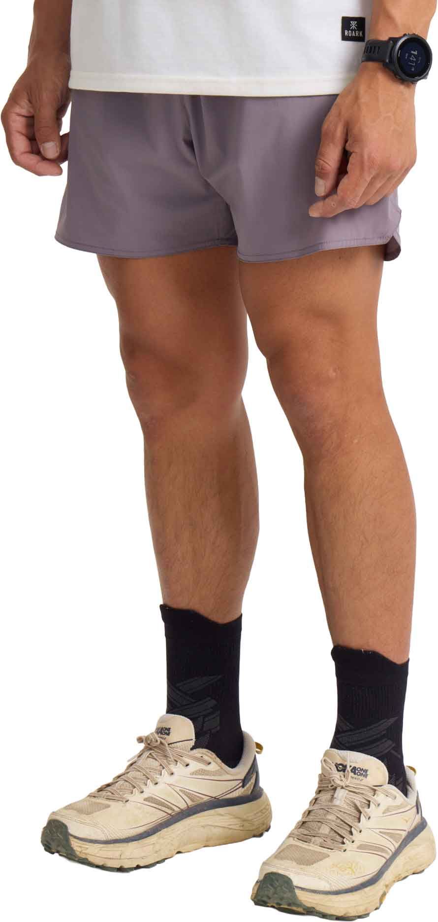 Short de running Roark Alta 5″ Shark, léger et extensible 4 directions, traitement déperlant, doublure intérieure antimicrobienne, séchage rapide et détails réfléchissants pour la visibilité.