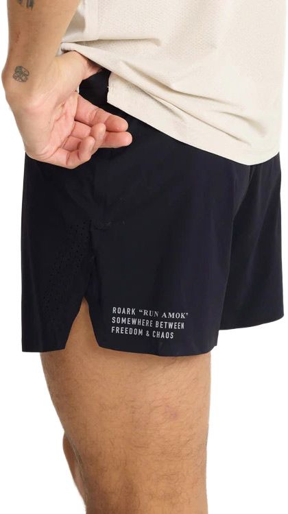 Short de running homme Roark Alta Elite 3.5″ Black en nylon stretch anti-microbien, séchage rapide, entrejambe 9 cm, slip intégré, poches discrètes et logos réfléchissants.