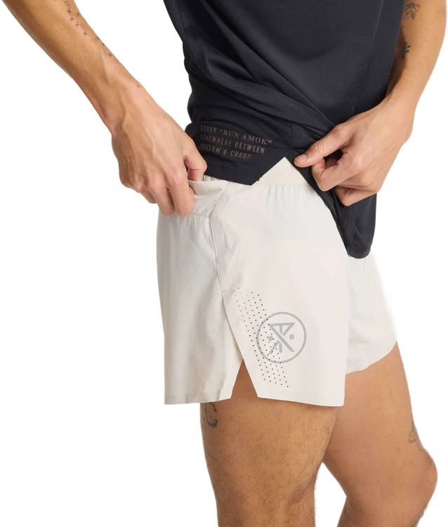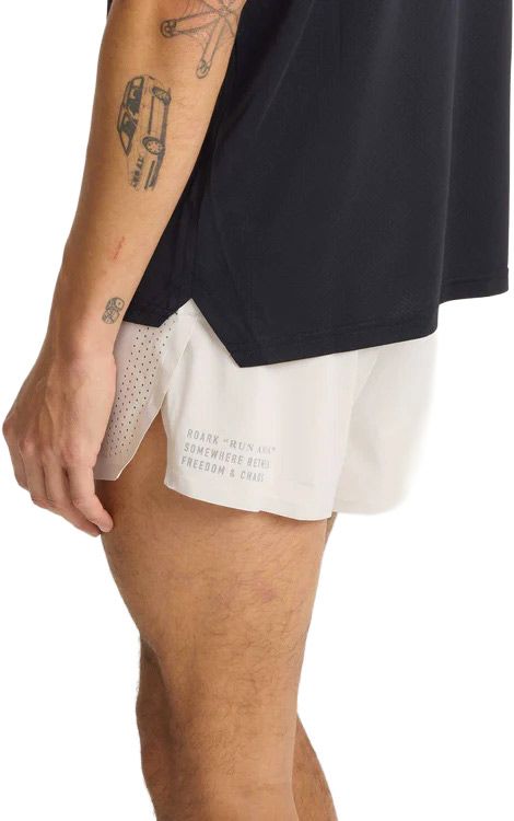 Short de running Roark Alta Elite 3.5″ Moonstone pour homme, en nylon élasthanne avec slip intégré, anti-microbien, séchage rapide et perforations laser pour fraîcheur et liberté de mouvement sur sentier.