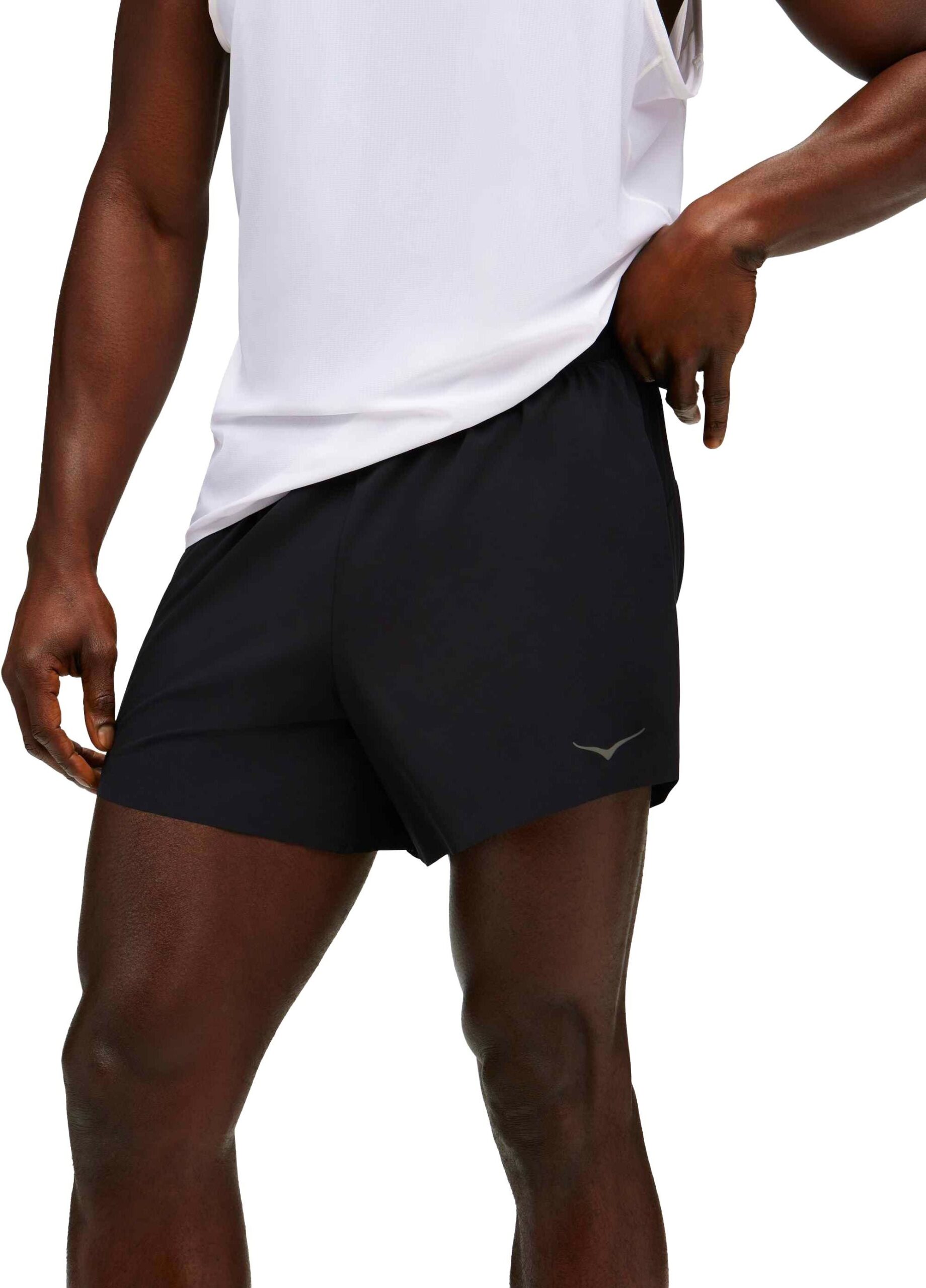 Short de trail running Hoka Glide 5″ Short W/ Brief Black ultra-extensible, léger et respirant avec slip intégré, poche zippée et taille élastique pour liberté de mouvement et confort sur longue distance.