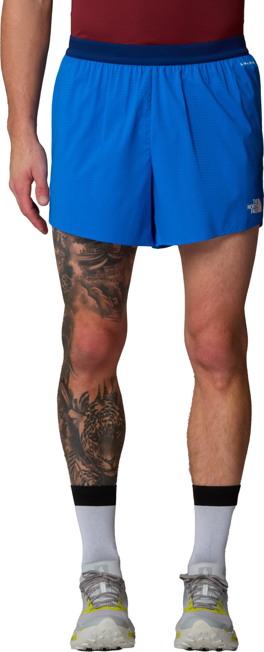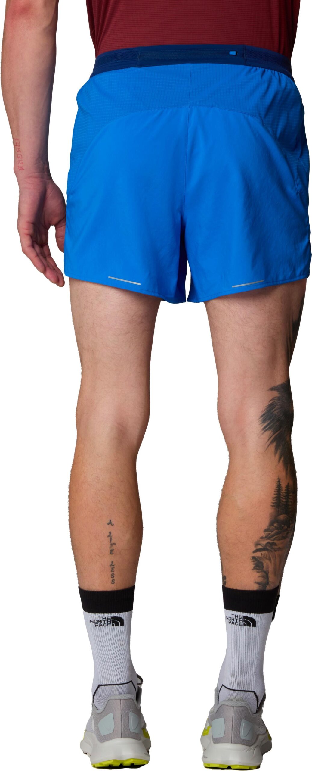 Short de running The North Face Sunriser Short 5″ Hero Blue/Estate Blue pour homme, extensible avec technologie FlashDry™ respirante et séchage rapide, finition Lightrange™ anti-odeurs et UPF, slip intégré et taille ajustable.