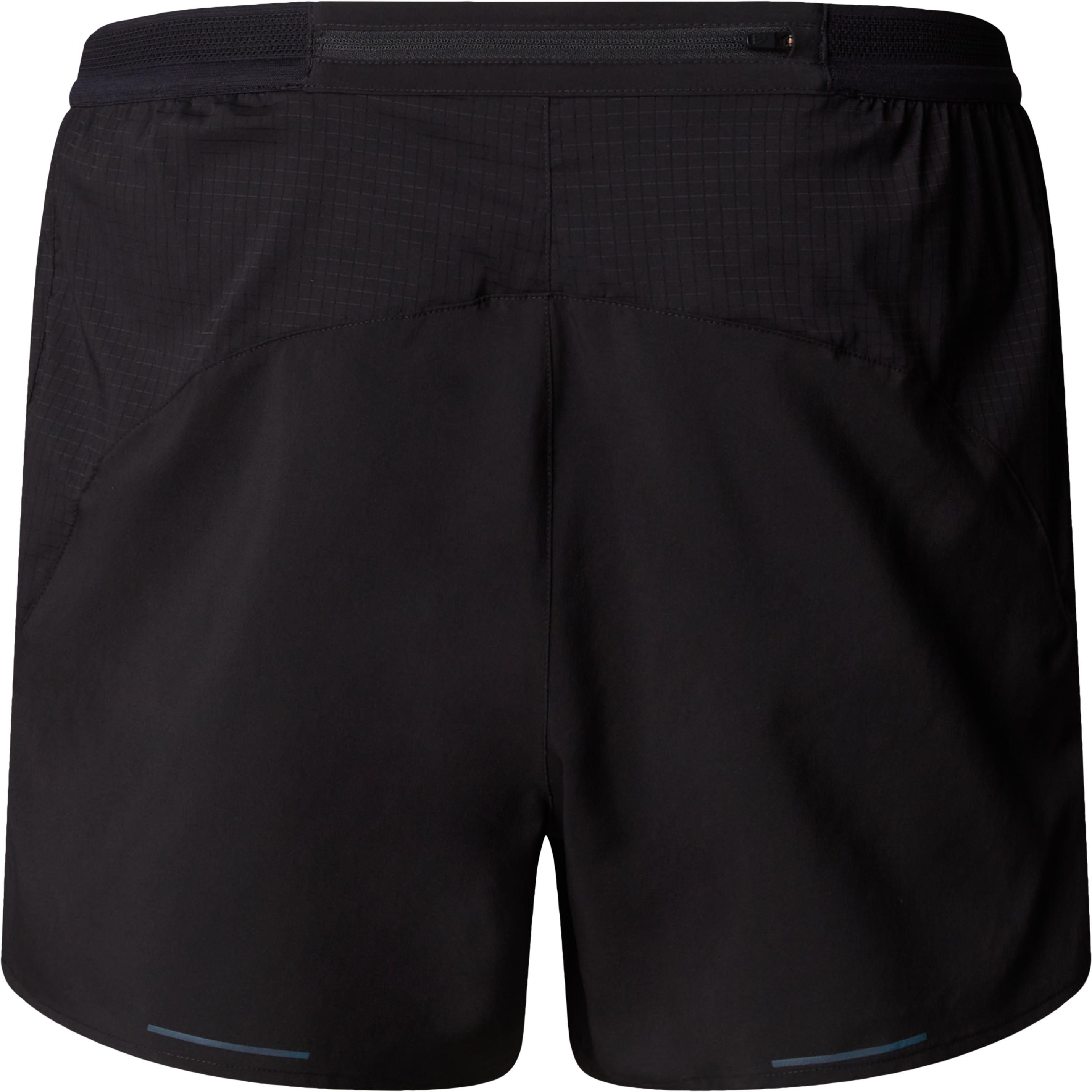 Short The North Face Sunriser 5″ TNF Black pour homme, conçu pour le running estival avec technologie FlashDry™ respirante et séchage rapide, finition Lightrange™ UPF et anti-odeurs, slip intégré, taille ajustable et poche arrière sécurisée.