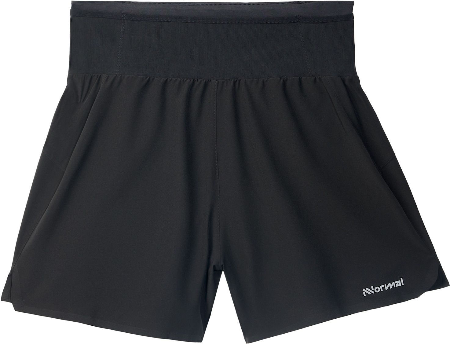 Short NNormal Race Shorts Black pour homme, short de trail running léger à taille haute offrant maintien, liberté de mouvement et rangements pratiques avant/arrière pour téléphone, bâtons et nutrition.