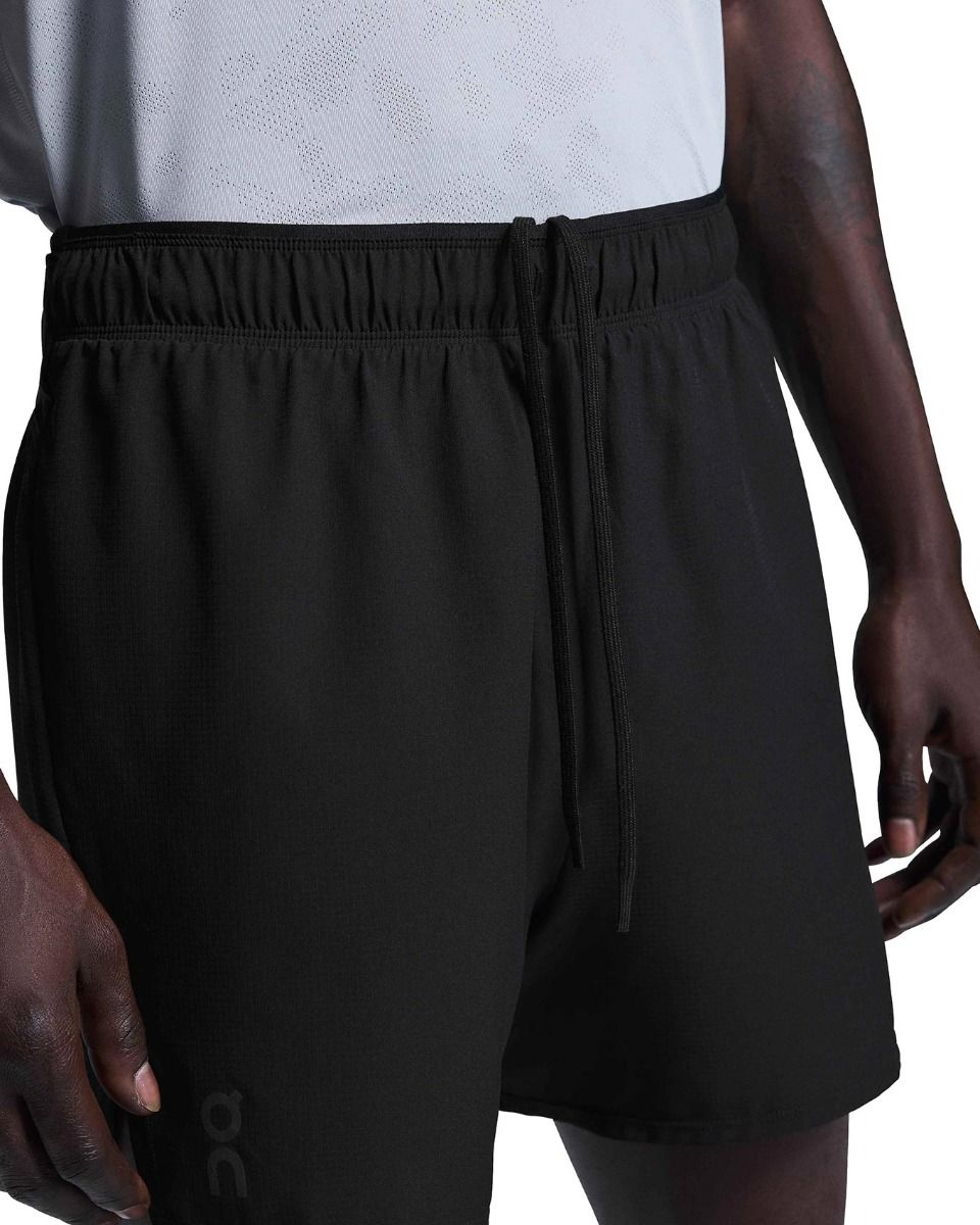 Short de trail running On Running Trail Shorts Black, léger et extensible, avec slip intégré à séchage rapide, 4 poches pratiques et boucle pour bâtons, respirant et durable.