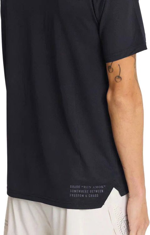 T-shirt de running homme Alta Elite SS Black de Roark en polyester recyclé respirant et élasthanne, léger et extensible, évacue l’humidité, anti-microbien, mesh ventilé et manches raglan pour liberté de mouvement.