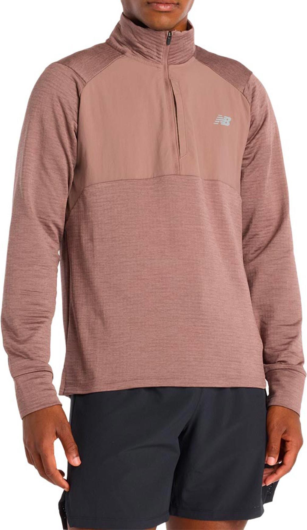T-shirt New Balance Athletics Heat Grid 1/2 Zip manche longue thermique, respirant et déperlant, avec poche poitrine zippée et col montant pour vos entraînements par temps frais.