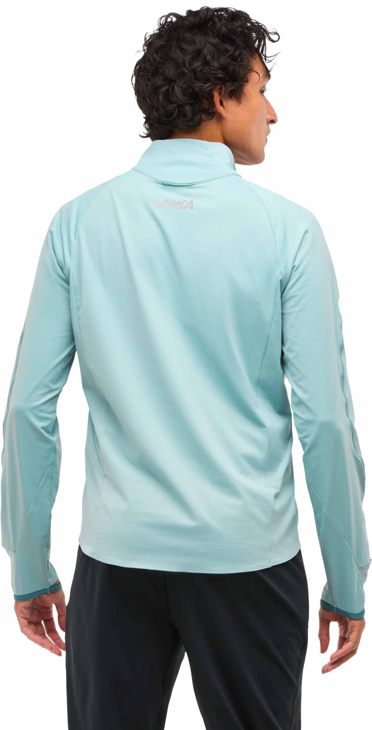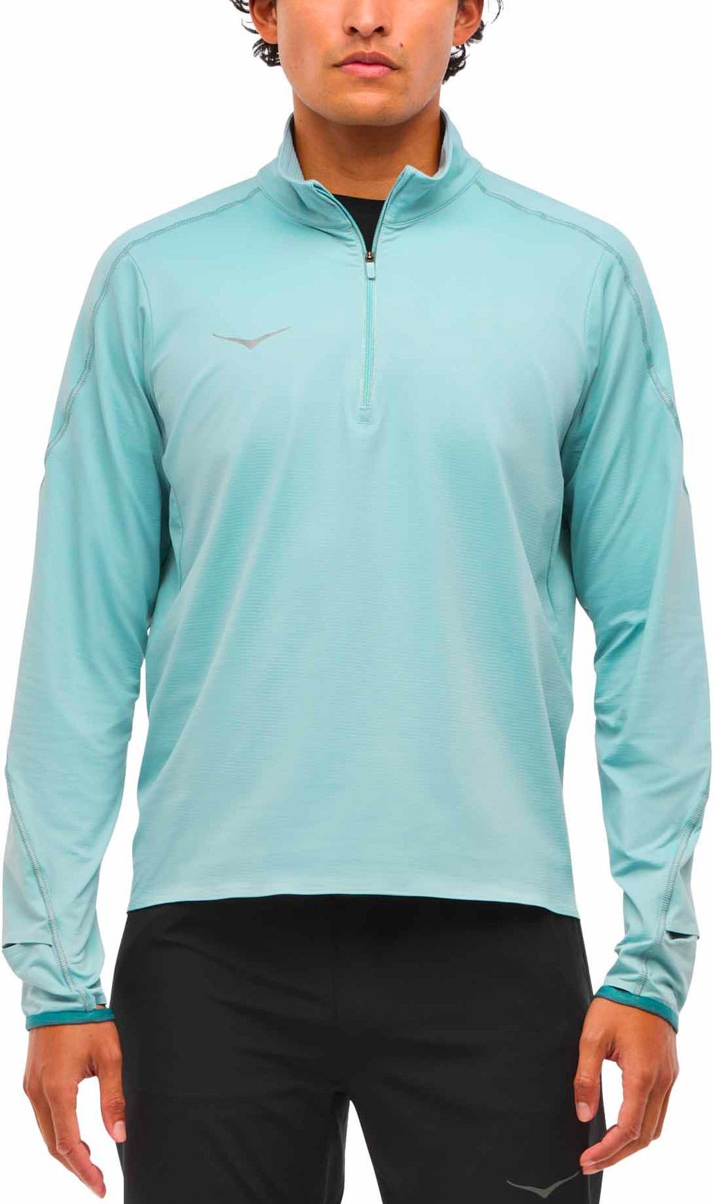 Le tee-shirt à manches longues Hoka Glide Tech Quarter Zip Druzy pour homme allie séchage rapide, fraîcheur anti-odeur Hei-Q Mint et détails réfléchissants pour vos sorties running.
