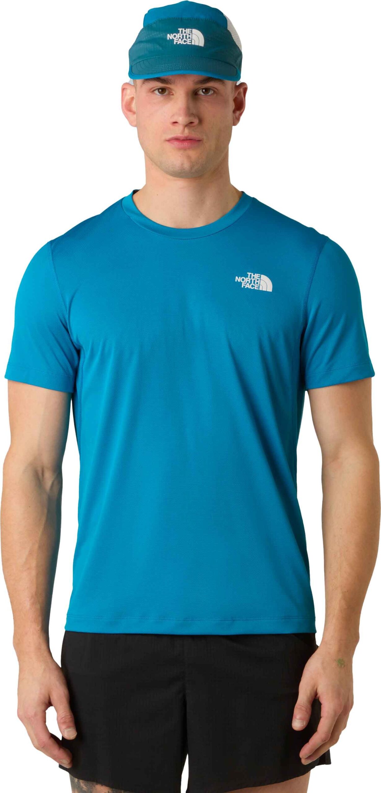T-shirt The North Face Lightbright S/S Tee Dusk Blue homme, respirant FlashDry™, évacue l’humidité et sèche rapidement pour le trail et les sentiers d’été.
