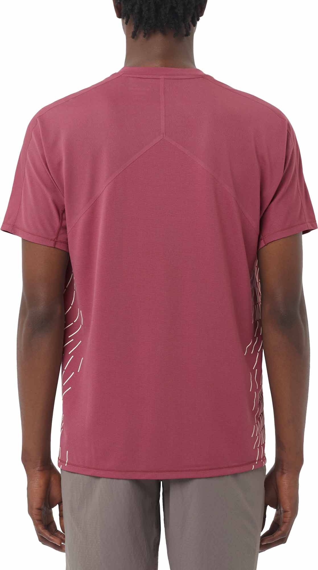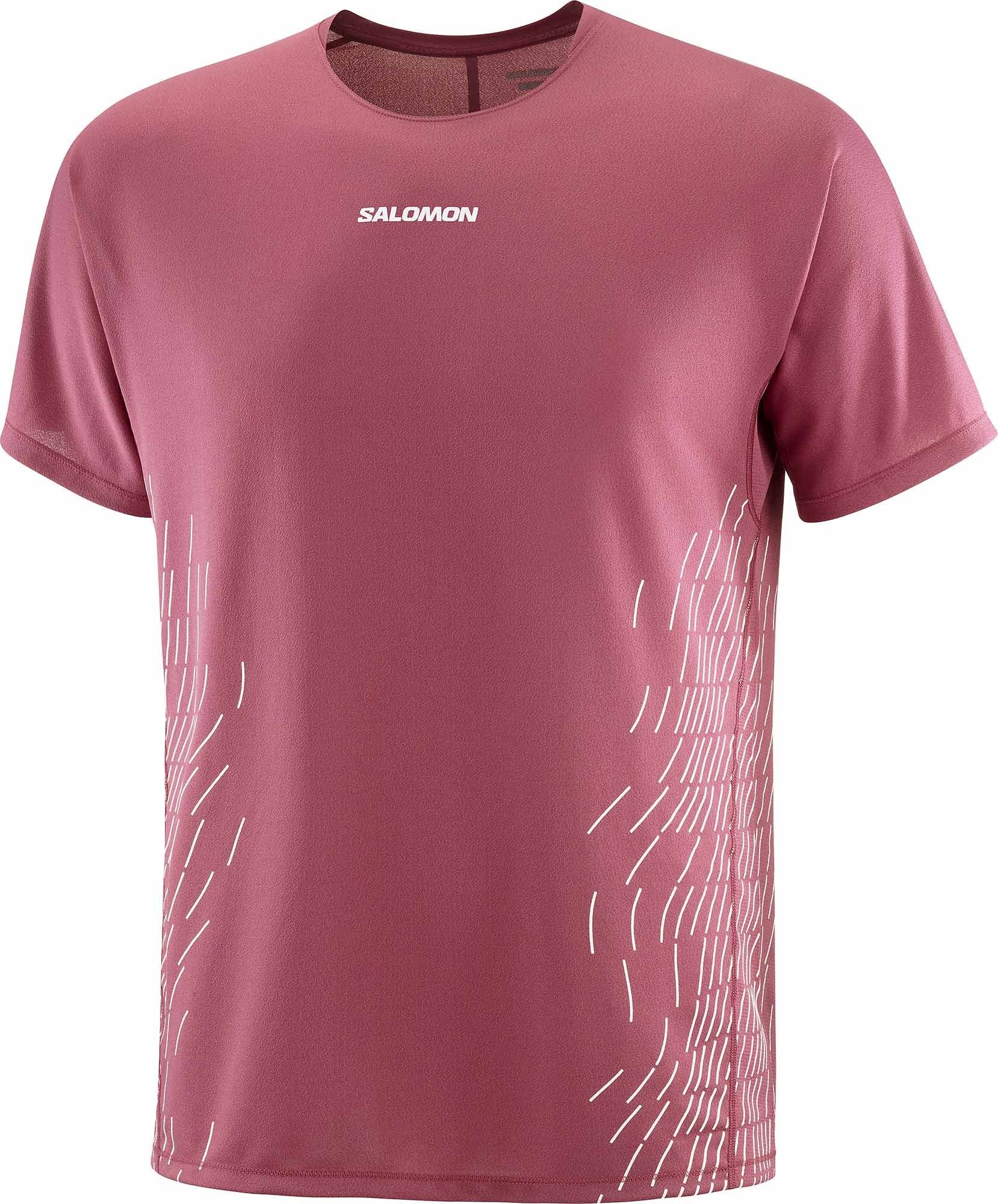 T-shirt Salomon Sense Aero SS Tee GFX pour homme en Knit-Flow 100 g/m², respirant, séchage ultra-rapide, coutures minimalistes et marquages réfléchissants pour running route et trail.