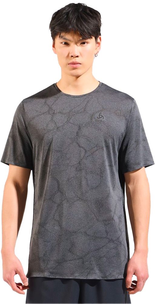 T-shirt Odlo Zeroweight Engineered Chill-Tec Tee Crew Neck S/S pour homme, conçu pour le trail et le running estival. Maille ultrarespirante en polyester recyclé, ventilation latérale et détails réfléchissants.